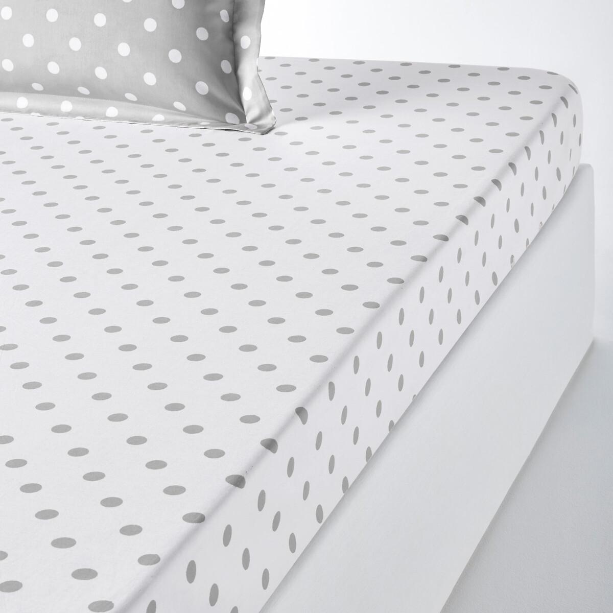 Clarisse printed fitted sheet: polka dots for a light and romantic atmosphere. Cotton is part of our daily lives. We love it for its suppleness and softness. Easy Care, it is ideal for the beds of young and old alike!Product Details • 100% cotton • For mattress height 25cm. Care Advice • Machine washable at 60°C • By washing your laundry at 40°C instead of 60°C, you limit energy consumption. Dimensions • 90 x 190cm: Single • 140 x 190cm: Double • 160 x 200cm: King • OEKO-TEX® Standard 100. Standard 100 certification by OEKO-TEX® tests textile products for harmful substances via an independent, international label.