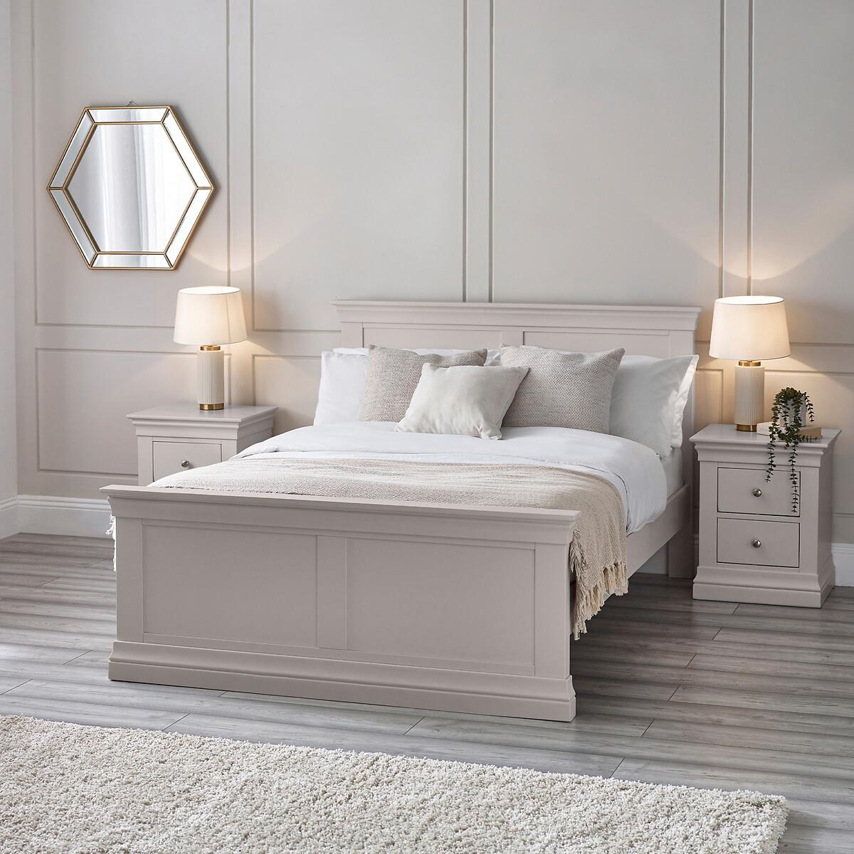 Add a touch of French elegance to your bedroom with the Clarrés French Vintage Bed. This beautiful bed is sturdily constructed from a blend of pine and MDF, paired with solid pine slats to ensure robust support for a restful night's sleep. With charming details such as elegantly tapered cornices and a unique cut-out plinth base, this bed exudes sophistication. Its timeless design and sleek finish seamlessly complements both modern and traditional interiors. Product Details • MDF and plywood frame • Panelled headboard and footboard • Solid pine slats • Sprung slatted base • Full assembly required • Fixings supplied • Mattress sold separately • 12 Months manufacturers warranty • Care advice: wipe clean with a soft cloth. Product Composition - 99% Wood, 1% Metal. Product Dimensions Double - 205.5 cm x 150 cm x 105 cm , Weight - 50 KGKing - 205.5 cm x 150 cm x 105 cm , Weight - 50 KGPackaged Dimensions. Double: Parcel 1 Packaged Dimensions - 160 cm x 115 cm x 24 cm, Weight 47 kg Parcel 2 Packaged Dimensions - 202 cm x 20 cm x 18 cm, Weight 11 kg. King:Parcel 1 Packaged Dimensions - 160 cm x 115 cm x 24 cm, Weight 47 kg Parcel 2 Packaged Dimensions - 202 cm x 20 cm x 18 cm, Weight 11 kg. This product will be dispatched by one of our trusted suppliers. You’ll be contacted by their selected courier about your delivery. Please note: this product cannot be delivered to all Offshore Islands, Northern Ireland or Republic of Ireland.