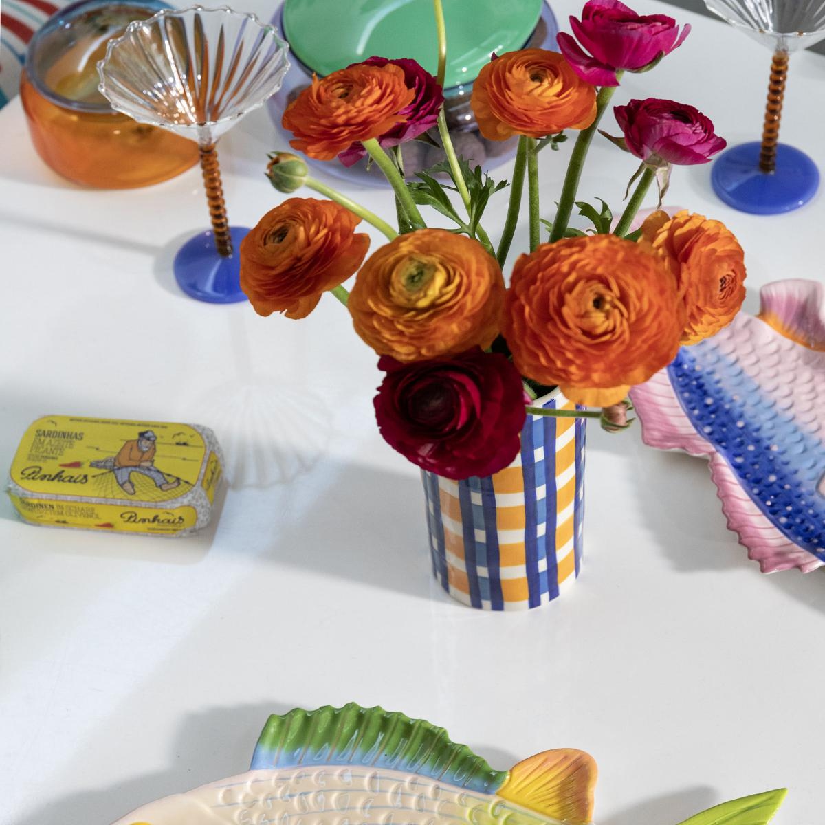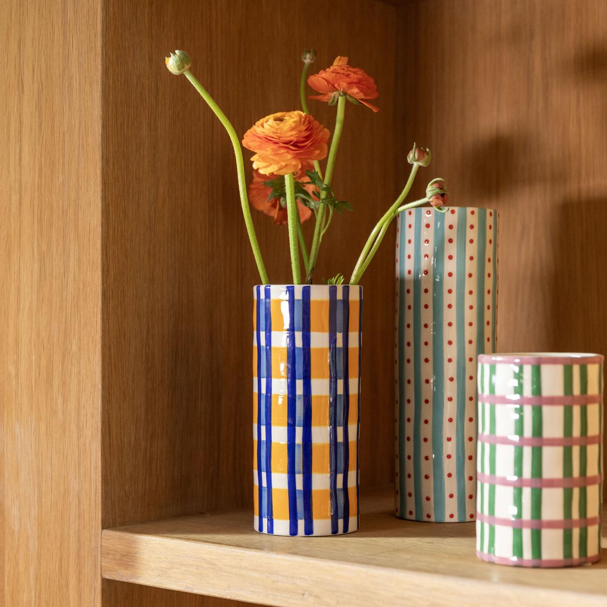 I love the clash check vase for its bold, playful pattern and vibrant colours, which make it a real statement piece. Its multicoloured design works beautifully in both contemporary and eclectic interiors, adding a pop of colour to neutral schemes or complementing other colourful accessories. It’s versatile enough to be used on a side table, mantel, or as a centrepiece, filled with fresh or dried flowers for added texture. Practical tips include pairing it with simpler ceramics to let its colourful pattern stand out, or mixing it with other checked or geometric items to create a curated, layered look. Its hand-painted finish means each piece has unique charm, making it a standout addition to any room.