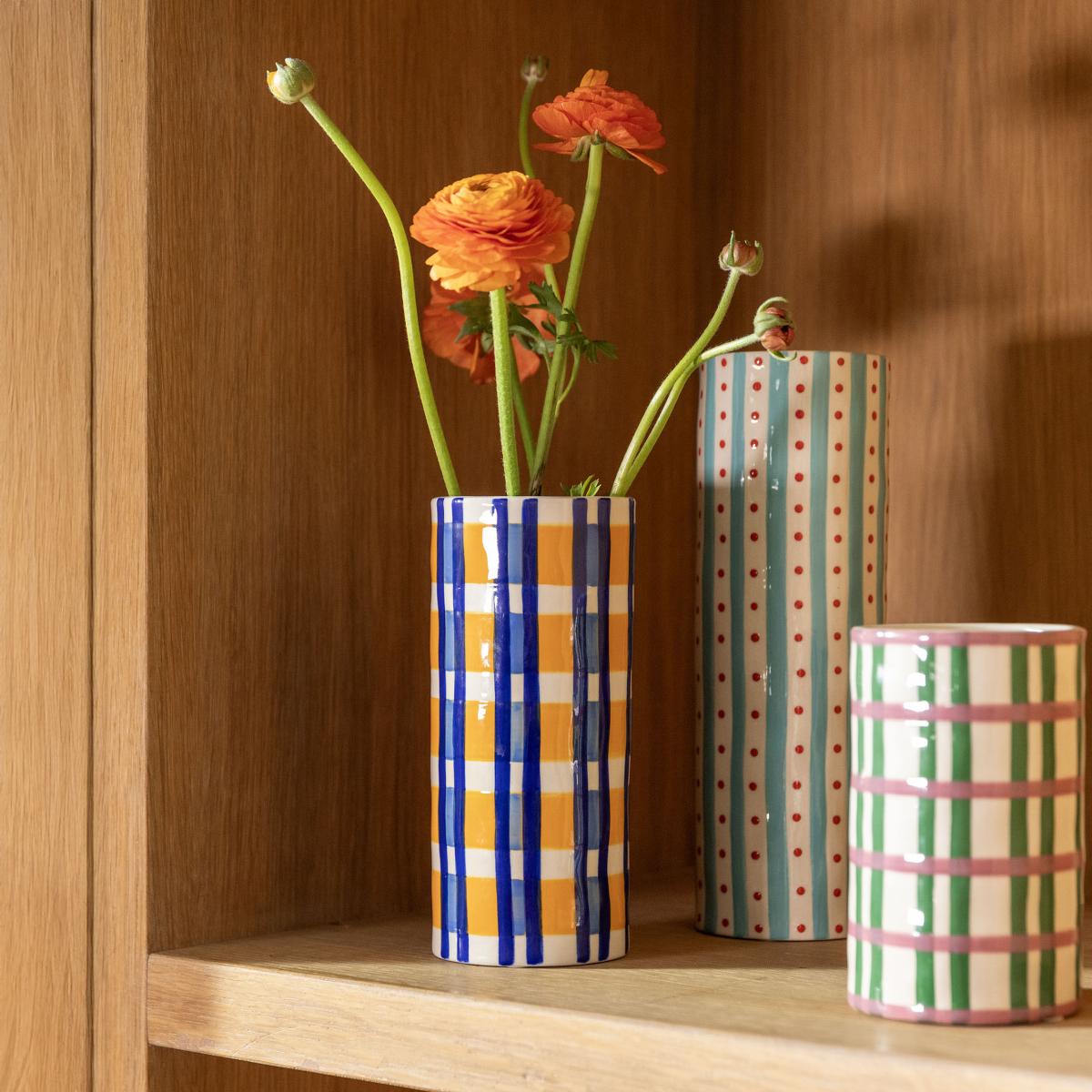 I love this Clash Grid Vase for its vibrant, playful vibe and the way it instantly adds personality to any space. Its colourful, hand-painted design makes it a great piece for eclectic or contemporary interiors, especially when styled with fresh or dried flowers to bring out its cheerful tones. It works well as an accent on shelves, side tables, or open shelving units. For practical styling, try pairing it with more neutral or textured ceramics to create visual interest, or group it with other colourful accessories for a lively display. Its compact size makes it versatile for small spaces, and the sturdy shape ensures it’s both functional and decorative.