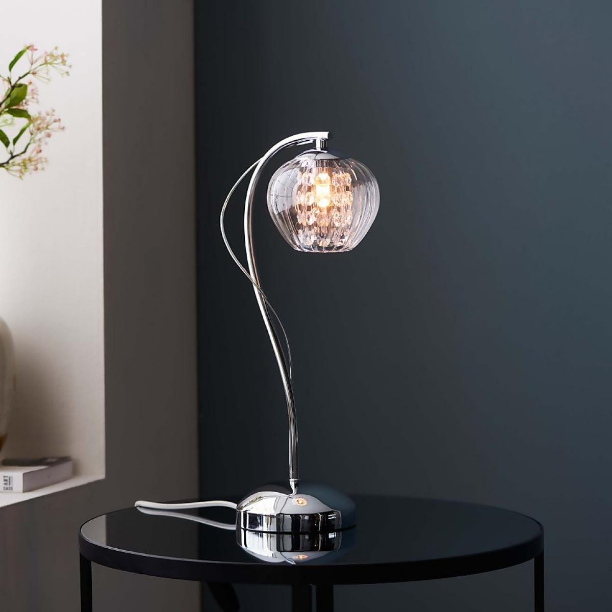 Stylish swan neck table lamp with glass detail shade, perfect for bedside tables or living room spaces.