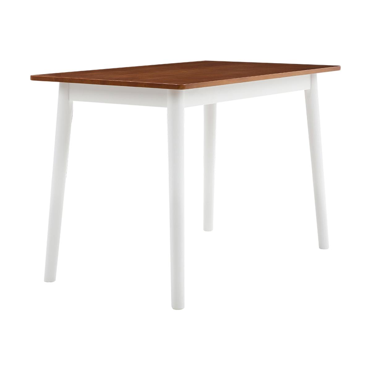 This dining table is designed in warm color, which looks harmonious with the white color of the legs. The color combination of the dining table is not only harmonious but also enhances your dining experience. The choice of material for the dining table is high quality wood and good hardware, which ensures that the table is very sturdy and will not wobble. The dining table has plenty of room for four people to have meal together.