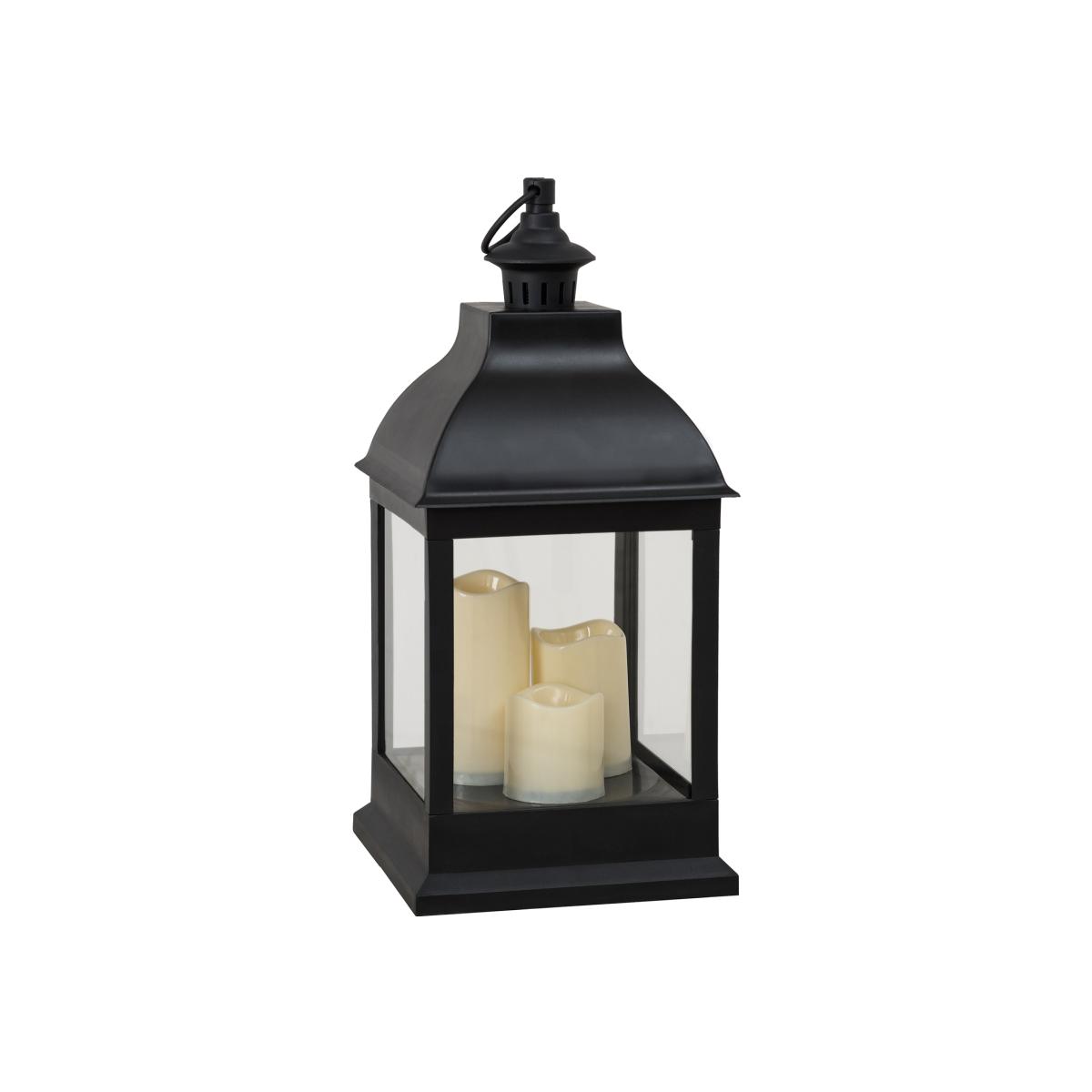 Add a touch of timeless elegance to your outdoor space with this classic lantern. Its antique bronze finish and glass panes create a charming, vintage look that enhances any setting. The lantern features three realistic LED pillar candles that flicker like real flames, providing a warm and inviting glow. Made from durable, weather-resistant synthetic materials, it can withstand outdoor elements without fading or deteriorating. Perfect for illuminating pathways, patios, or gazebos, this lantern is ready to use right out of the box-just add 2 C batteries (not included).