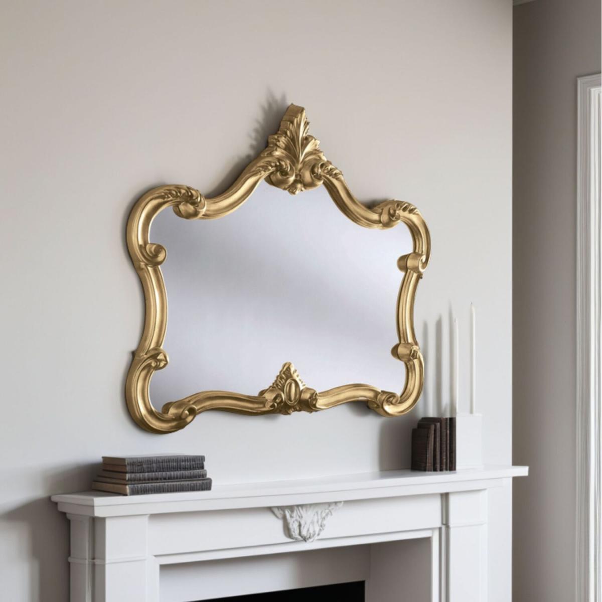 The gold carved landscape mirror is a striking piece that works well in both classic and eclectic interiors, adding a touch of sophistication and elegance. I love how its ornate detailing can elevate a simple space, making it ideal for hallways, living rooms, or even above a fireplace. For styling tips, try pairing it with antique or vintage decor to enhance its traditional vibe, or contrasting it against minimalist backgrounds for a more contemporary statement. To keep the look balanced, avoid clutter around the mirror and consider pairing it with warm metallic accents or neutral tones to let the gold detail really stand out. It's a versatile piece that can be the focal point in the room or a complementary feature to more understated surroundings.