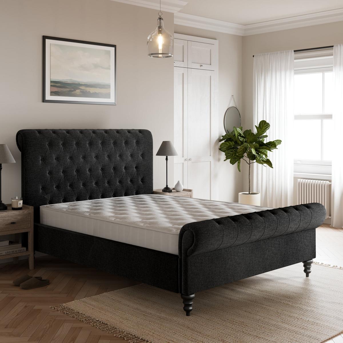 The Chesterfield bed in charcoal offers a sleek, timeless look that works particularly well in both contemporary and classic interiors. Its deep button-tufted headboard adds a touch of sophistication, making it a versatile centerpiece. I love pairing it with neutral bedding and layered textiles for a cosy, inviting feel or with metallic accents and bold art for a more upscale look. When styling around this bed, keep the colour palette refined-think shades of grey, white, or subtle earthy tones-and consider adding plush rugs or statement lighting to enhance its luxurious appeal. It’s a practical choice for creating a chic, restful bedroom that easily adapts to different interior styles.
