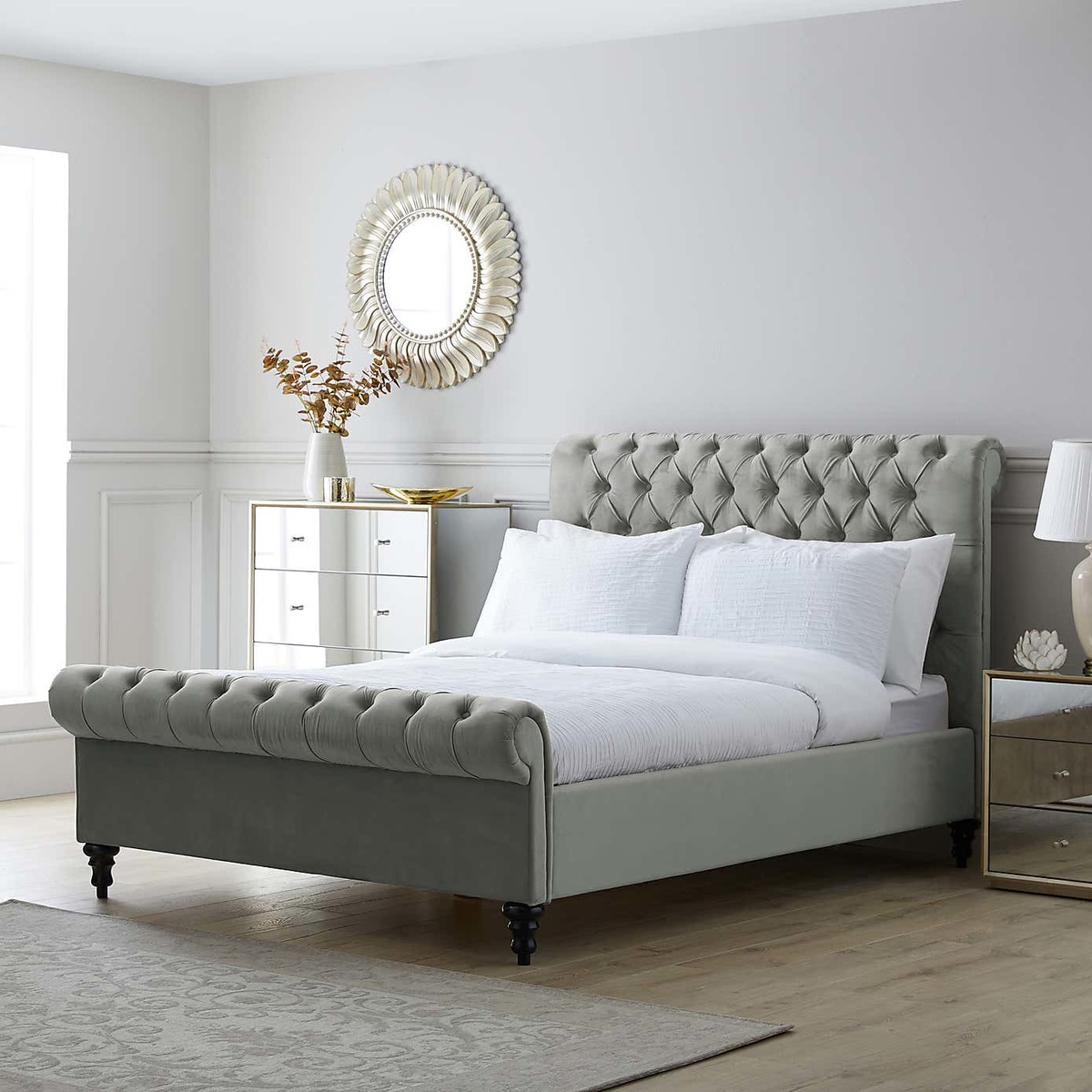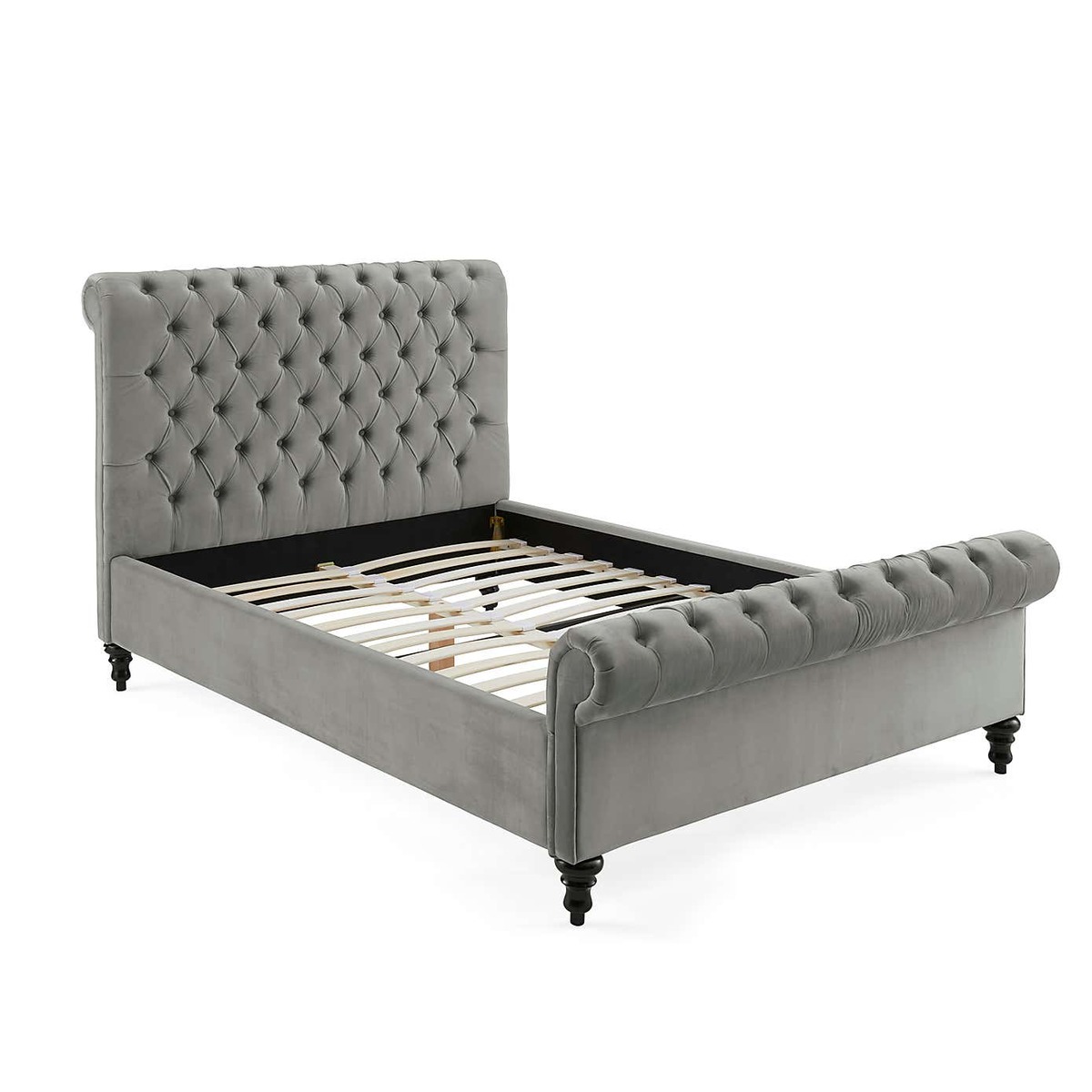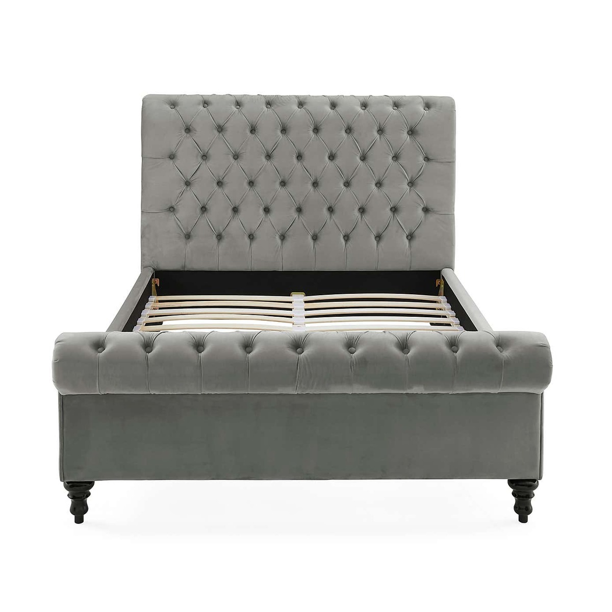 Inspired by the iconic chesterfield style, this luxurious bed frame features elegant scrolled head and footboards, complete with deep buttoning and a hand sewn finish. Please note: Price is for bed frame only and does not include mattress. Please see the packaging dimensions below to check if this bed is suitable to fit in your car.
