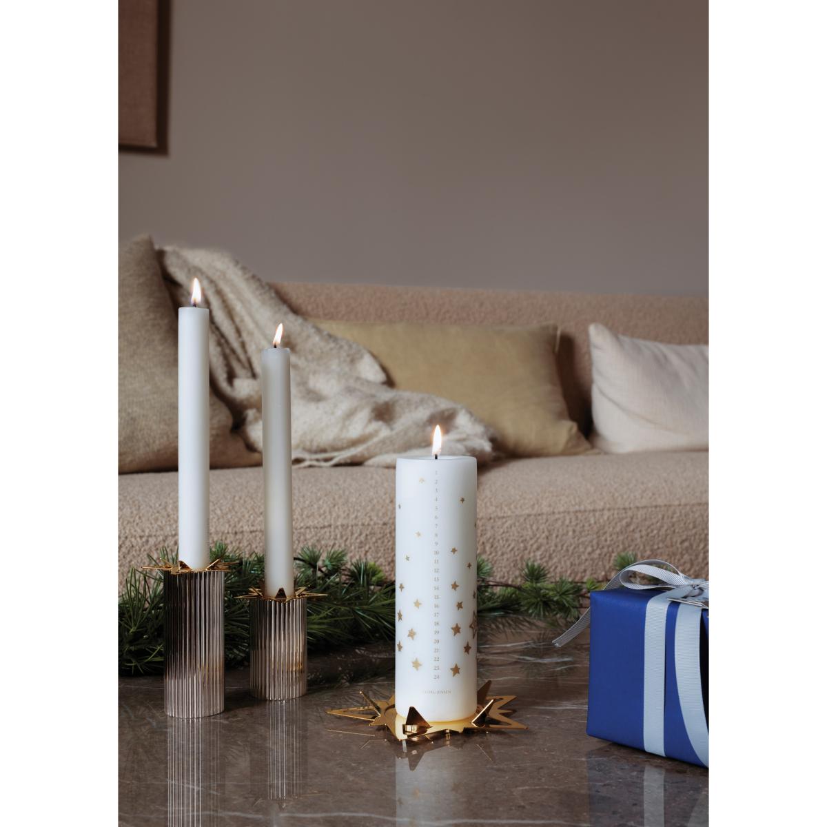 Classic Christmas star candle holder 2 pack from Danish brand Georg Jensen are made of metal and designed with five large points and ten smaller points each. Five of the stars' points are angled slightly upwards, and in the middle, there's room for one candle. Use the candle holders as Christmas decorations or as beautiful interior design pieces all year round.