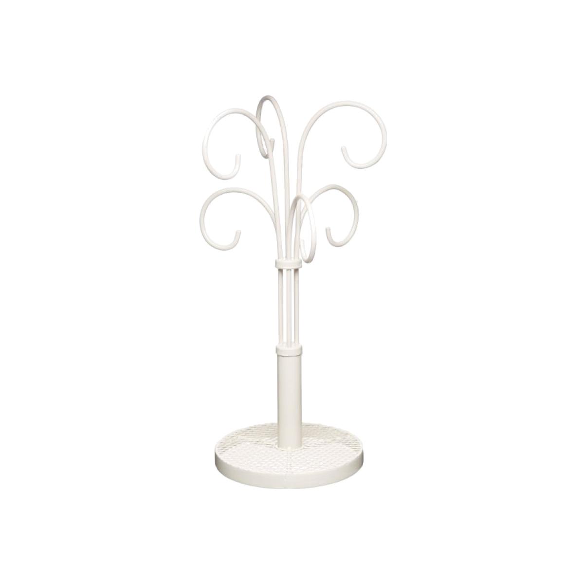 I love this mug tree because of its clean, minimalist aesthetic and sculptural quality. It works particularly well in kitchens with a vintage or cottage vibe, where it can bring a touch of charm without overwhelming the space. Practical styling tips include placing it on open shelving or a countertop where it can serve as both a functional organiser and an eye-catching piece. To keep it looking its best, consider pairing it with other white or neutral accessories for a cohesive look, or using contrasting colours to make it stand out as a statement sculpture within your interior.