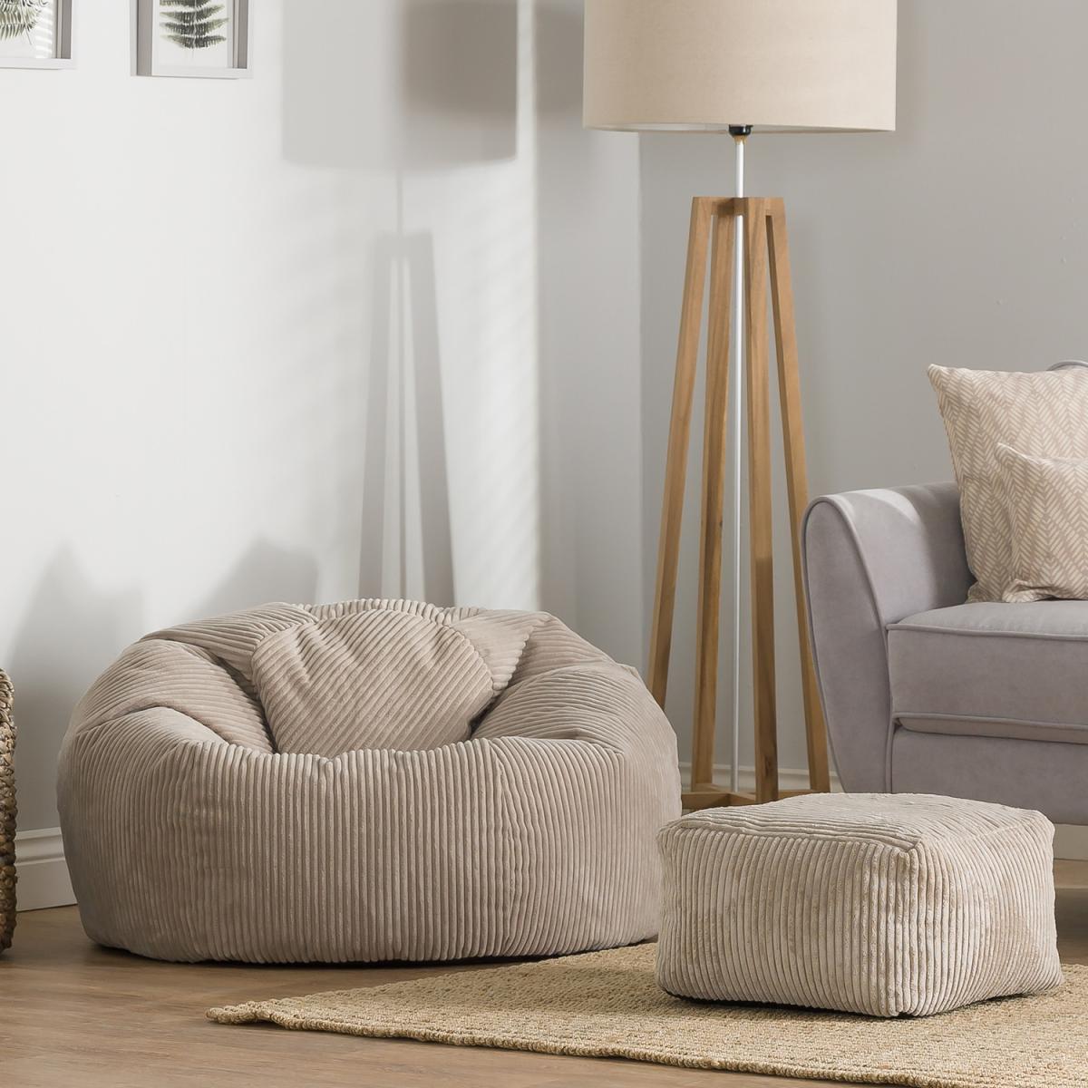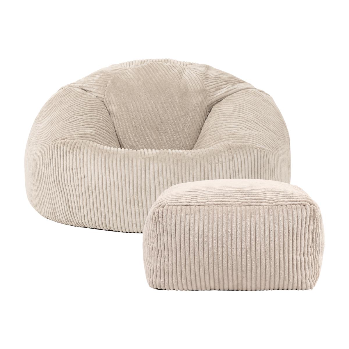 Classic Cord Bean Bag with Footstool - Natural