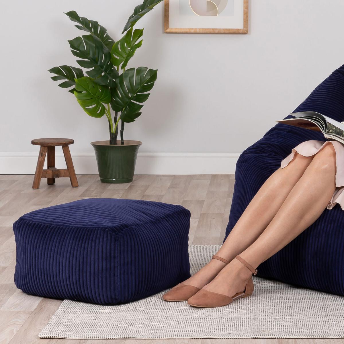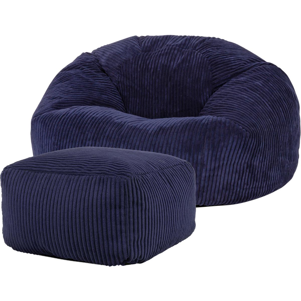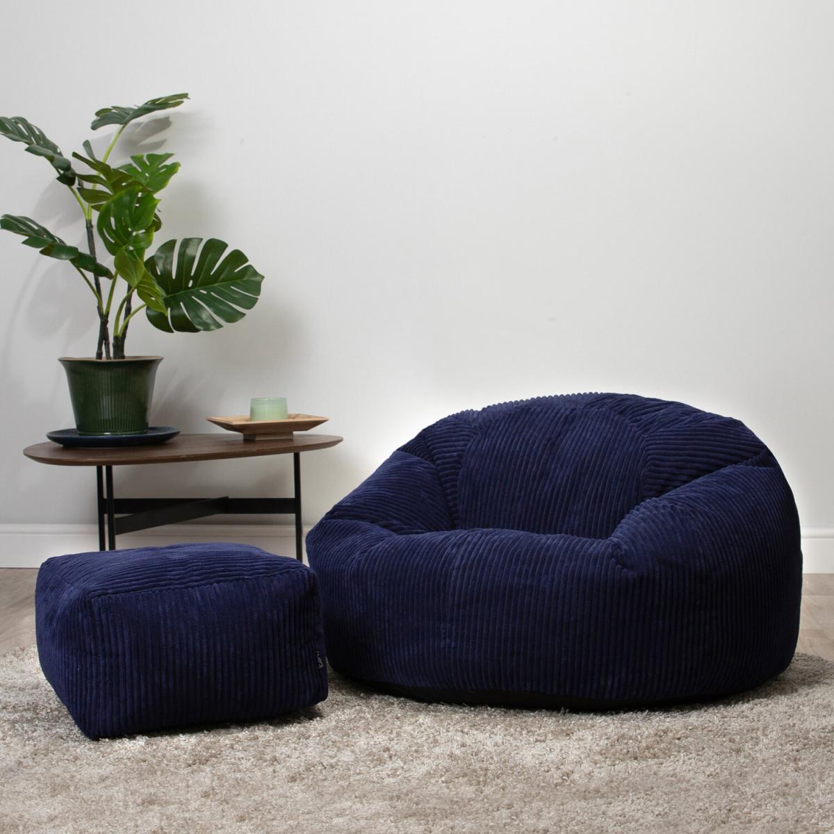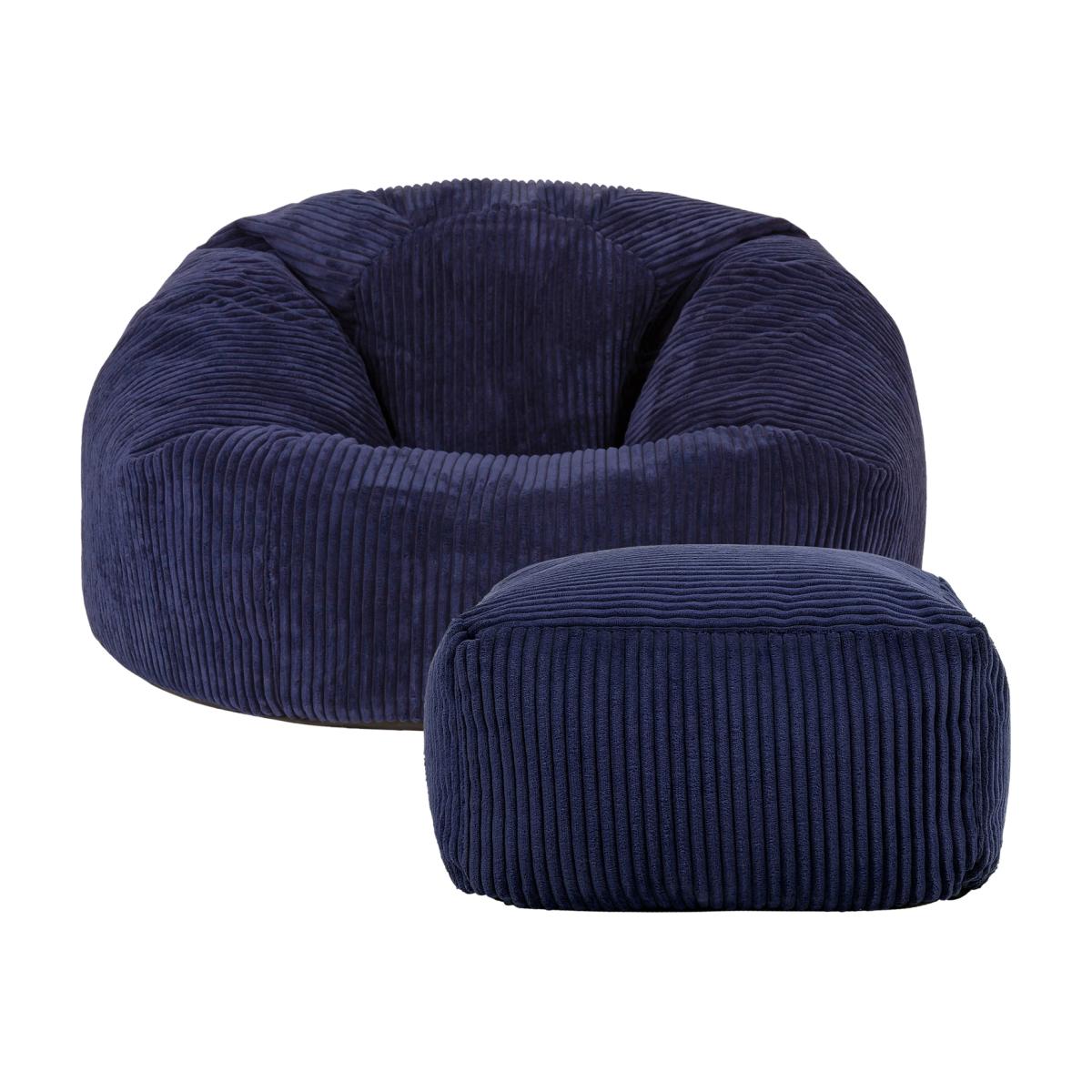 Classic Cord Bean Bag with Footstool - Navy