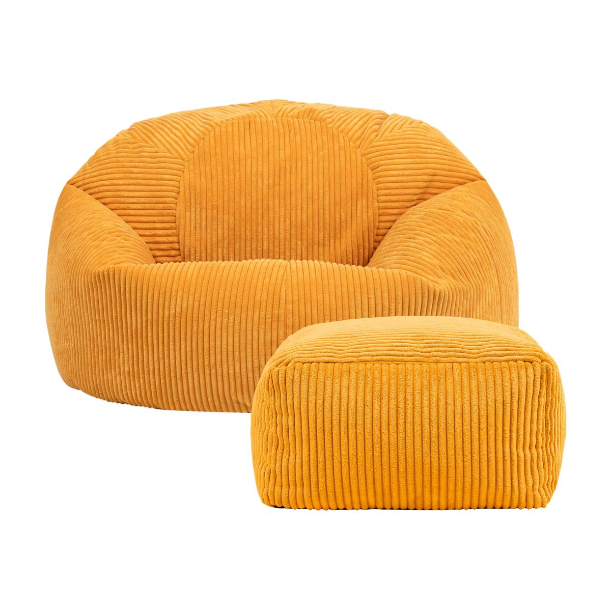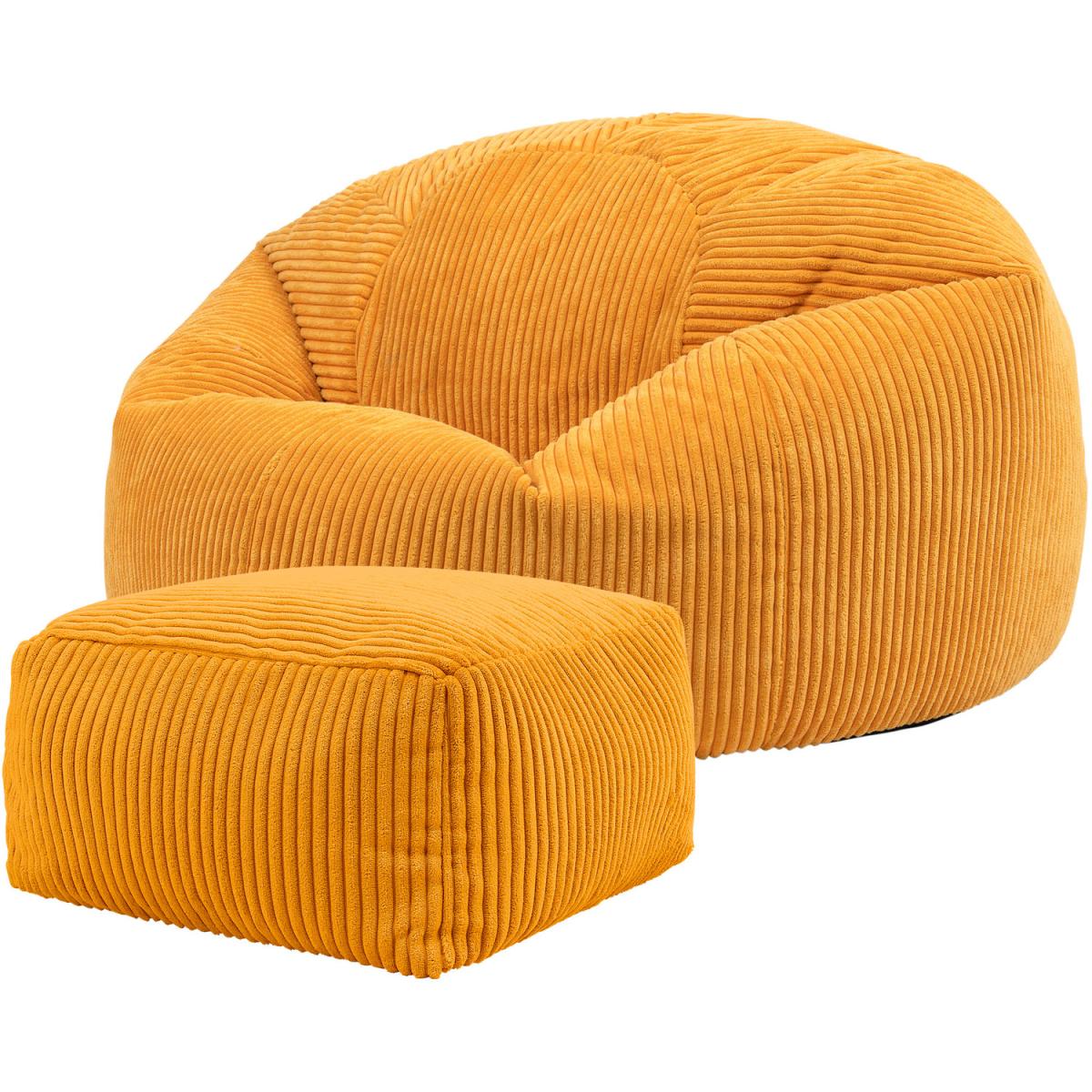I love this mustard yellow beanbag as it adds a cheerful, laid-back vibe to any space. It's perfect for creating a relaxed lounge area or informal seating in a living room or playroom. The cord fabric offers texture and durability, making it practical for everyday use. Styling tips include pairing it with neutral or earthy tones to let the colour pop, or mixing it with other bold accessories for a playful look. The footstool helps to anchor the piece and offers extra comfort, making it ideal for casual lounging or even as a statement piece in a contemporary or eclectic interior.
