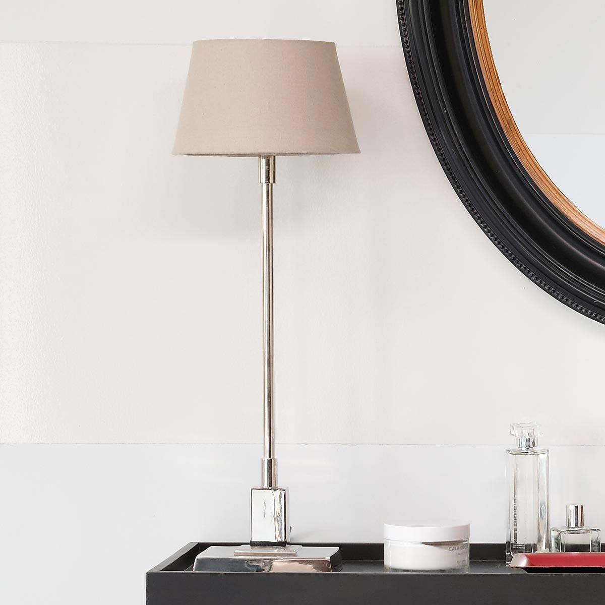 I love this lamp for its sleek, modern take on a classic silhouette, making it versatile for both contemporary and traditional interiors. The polished silver finish adds a subtle touch of sophistication, working well in spaces that embrace metallic accents or monochrome palettes. It’s particularly effective on side tables or in a reading nook, where its clean lines and understated presence can highlight other design features. For styling tips, pair it with textured fabrics or soft throws to soften its metallic edge, and keep the surrounding decor minimal to let the lamp stand out. It’s a practical choice that combines style with functionality, ideal for adding ambient lighting without cluttering the space.