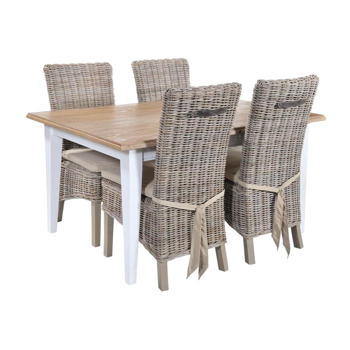 Classic Dining Set With 4 Rattan Chairs (1.4m)