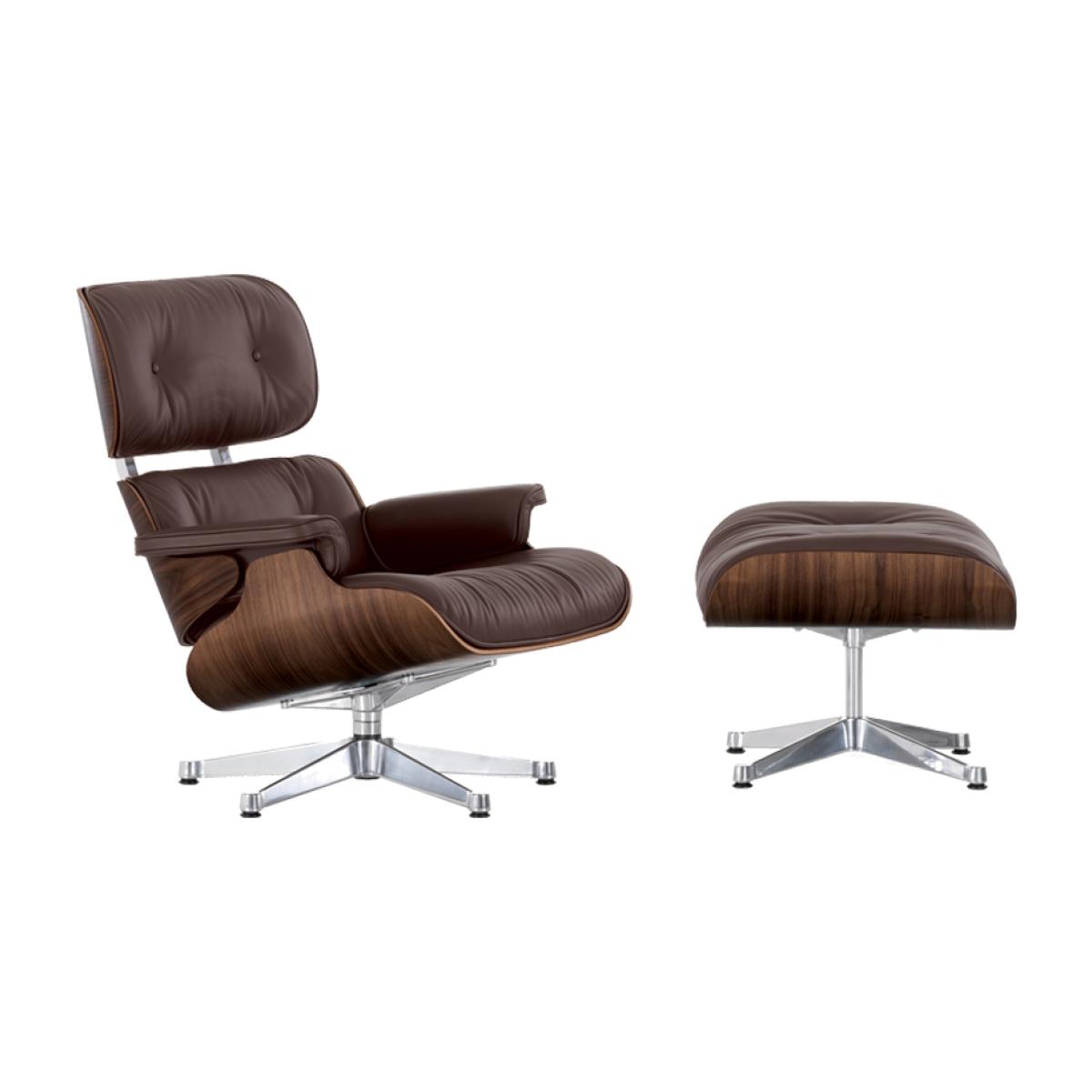 Originally designed by Charles and Ray Eames in 1956 as a gift for the director Billy Wilder, the chocolate leather and walnut Classic Eames Lounge Chair and Ottoman is crafted by esteemed manufacturers Vitra. A contemporary and luxurious interpretation of the traditional gentleman's club chair with matching ottoman, the chair was conceptualised as a a special refuge from the strains of modern living. Combining modern sculptural lines of walnut wood veneer shells and removable supple chocolate-hued natural leather upholstery to create a design classic, the pairing is comfortable and visually stylish. Boasting a die cast aluminium frame that rests on shock mounts for flexible movement, a quirky signature five arm base and a functional swivel action, each Lounge Chair and Ottoman carry Charles and Ray Eames' signature as a mark of authenticity. Praised by our founder Sir Terence Conran as the perfect example of design, innovation and beauty all coming together in one package, the Eames Lounge Chair and ottoman are truly iconic design pieces that would enhance any home. Care instructions: Leather should require no more than a wipe with a warm, damp, soft cloth to remove any dirt, followed by drying with a soft cloth - avoid using detergent. View our entire range of Eames furniture. Eames Lounge Chair Manufacturing in Vitra's Lounge Chair Atelier from Vitra on Vimeo.