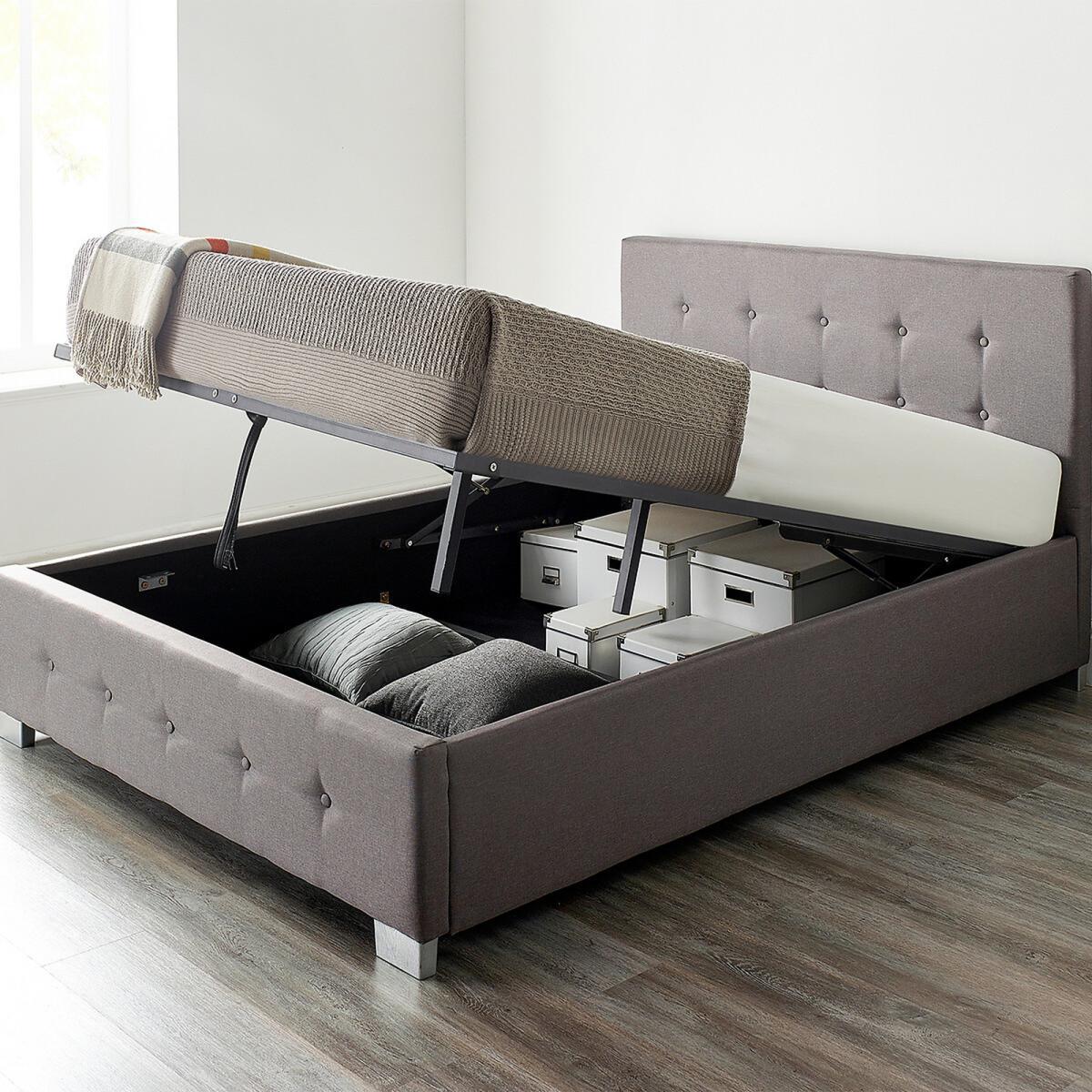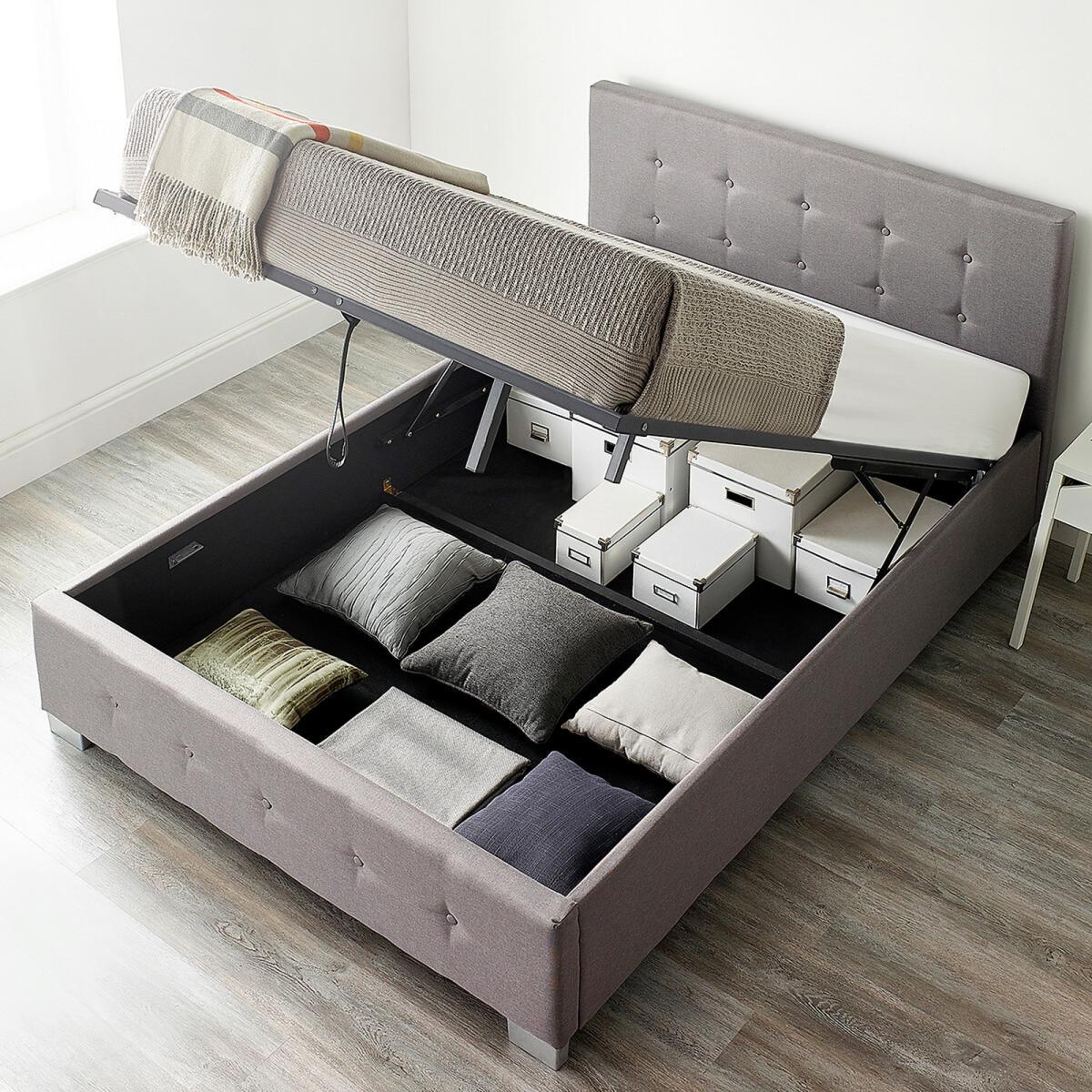 Please note: this product cannot be delivered to all Offshore Islands, Northern Island or Republic of Ireland. This product will be dispatched by one of our trusted suppliers. You’ll be contacted by their selected courier about your delivery. Please note this item will be delivered to your doorstep. A stylish and practical ottoman storage bed in a quality linen fabric finish. The bed features a durable steel framework with quality, hard wearing 8 ply poplar sprung slats. The sprung slats increase comfort whilst also increasing mattress life span. Classic buttoned headboard with padding for added comfort when sitting up in bed. Matching buttoned footboard and attractive silver feet complete the design. Quality linen fabric with a slight texture, hard wearing and easy to clean. Featuring quality gas lift pistons, the large storage area can be easily accessed enabling a large variety of items to be tidily stored away. The base is covered with a black fabric cloth so stored items are not in contact with the floor. Suitable for use with all standard UK size mattresses. The bed meets all UK FR and safety standards and has also undergone extensive structural testing. Supplied flat pack for self-assembly, approximate build time of 60-90 minutes. Swatch service: We offer a FREE swatch service. Please email samples@aspire-furniture.co.uk and include the below information:Please include 'La Redoute' in the title of your email. Name and address:Product: Essentials Ottoman Bed. Fabric: Linen. Colour: (in order to receive the correct colour please use the table below to identify correct reference)Your swatches will be delivered within 10 working days (subject to availability) Colour Description Colour to Request Beige Beige Linen Black Black Linen Grey Grey Linen Product Dimensions: Single: 96.5cmx102cmx205cm. Small Double:96.5cmx132cmx205cmDouble:96.5cmx149cmx205cmKing:96.5cmx162cmx215cm Super King:96.5cmx192cmx215cm. Please remember to measure your available space before ordering. Single:Parcel 1 Packaged Dimensions 198cmx 32cmx 18cm Weight: 12kg Parcel 2 Packaged Dimensions 107cmx 96cmx 9cm Weight: 12kg Parcel 3 Packaged Dimensions 188cmx 24cmx 11cm Weight: 13kg. Small Double:Parcel 1 Packaged Dimensions 198cmx 32cmx 18cm Weight: 14kg Parcel 2 Packaged Dimensions 137cmx 96cmx 9cm Weight: 13kg Parcel 3 Packaged Dimensions 188cmx 24cmx 11cm Weight: 13kgDouble: Parcel 1 Packaged Dimensions 198cmx 32cmx 18 14 Weight: 14kg Parcel 2 Packaged Dimensions 154cmx 96cmx 9 14 Weight: 14kg Parcel 3 Packaged Dimensions 188cmx 24cmx 11 15 Weight: 15kgKing: Parcel 1 Packaged Dimensions 208cmx 32cmx 18 17 Weight: kg Parcel 2 Packaged Dimensions 167cmx 96cmx 9 15 Weight: kg Parcel 3 Packaged Dimensions 198cmx 24cmx 11 22 Weight: kg Super King:Parcel 1 Packaged Dimensions 208cmx 32cmx 18cm Weight: 21kg Parcel 2 Packaged Dimensions 207cmx 96cmx 9cm Weight: 19kg Parcel 3 Packaged Dimensions 198cmx 24cmx 11cm Weight: 24kg. Upholstered Fabric Composition: Linen fabric