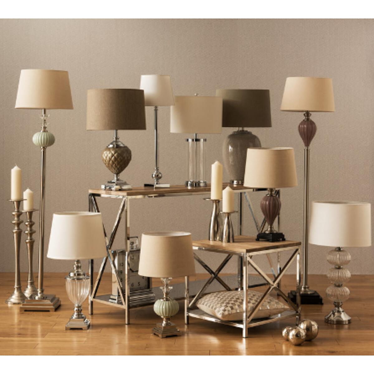 The graceful Ulalia table lamp has a beautifully rounded and pleated glass base. Round hardback, natural shade – Dimensions 23 x 34 x 34 cm Bulb not included. Bulb required: E27 60WDimensions:. H 57 x W 33cm. This product will be dispatched by one of our trusted suppliers. You’ll be contacted by their selected courier about your delivery.
