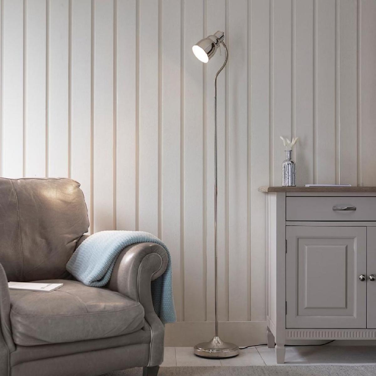 Classic 1-light reader floor lamp, featuring a bright nickel plated finish with a fully adjustable, flexible arm. The Classic reader floor lamp is a timeless and versatile lighting solution, perfect for focused illumination in any space. Finished in bright nickel, this sleek yet elegant design brings a touch of vintage-inspired sophistication to modern interiors. The fully adjustable, flexible arm allows for precise light direction, making it an ideal choice for reading corners, workspaces or cosy seating areas. With its industrial aesthetic and practical functionality, the Classic floor lamp seamlessly blends style with purpose. Whether placed beside a sofa, armchair or desk, it provides warm, targeted lighting exactly where you need it. Classic 1-light reader floor lamp, featuring a bright nickel plated finish with a fully adjustable, flexible arm. The Classic reader floor lamp is a timeless and versatile lighting solution, perfect for focused illumination in any space. Finished in bright nickel, this sleek yet elegant design brings a touch of vintage-inspired sophistication to modern interiors. The fully adjustable, flexible arm allows for precise light direction, making it an ideal choice for reading corners, workspaces or cosy seating areas. With its industrial aesthetic and practical functionality, the Classic floor lamp seamlessly blends style with purpose. Whether placed beside a sofa, armchair or desk, it provides warm, targeted lighting exactly where you need it.