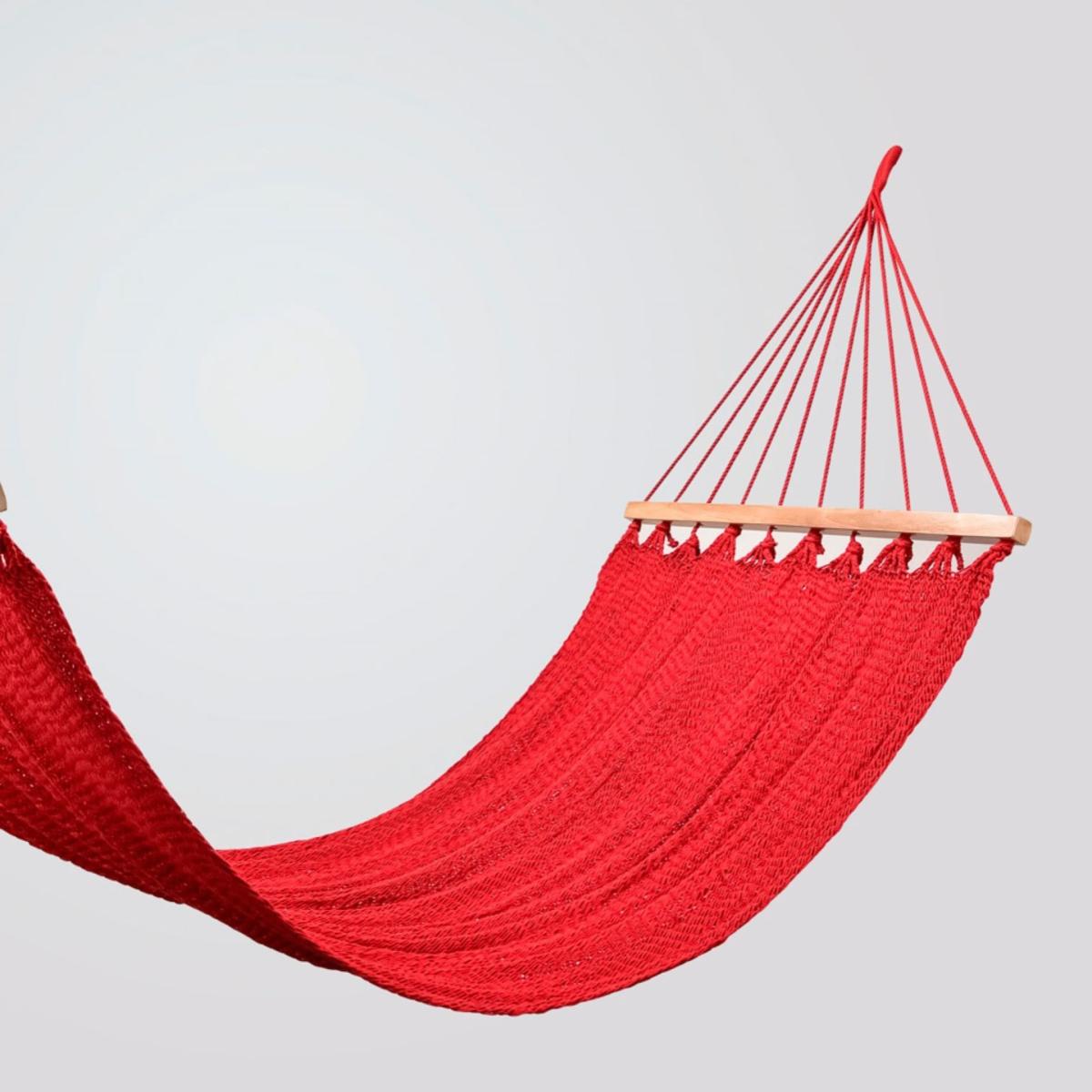 Classic Red Cotton Hammock - Teak Wooden Bar Artissanos