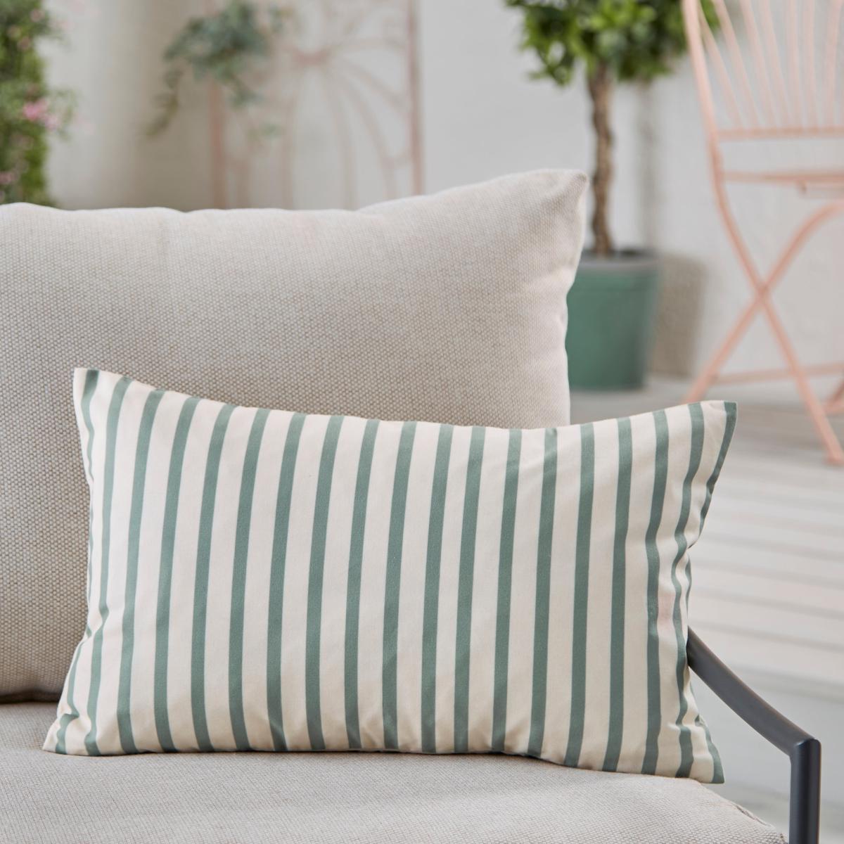 Boasting a bold lilypad stripe design, this cushion cover is perfect for adding a sophisticated look to your outdoor areas this summer. The zipper fastening will keep the cushion insert secure inside of the cover during use. This Collection is verified by OEKO-TEX® and independently tested for harmful substances. It stands for customer confidence and high product safety.