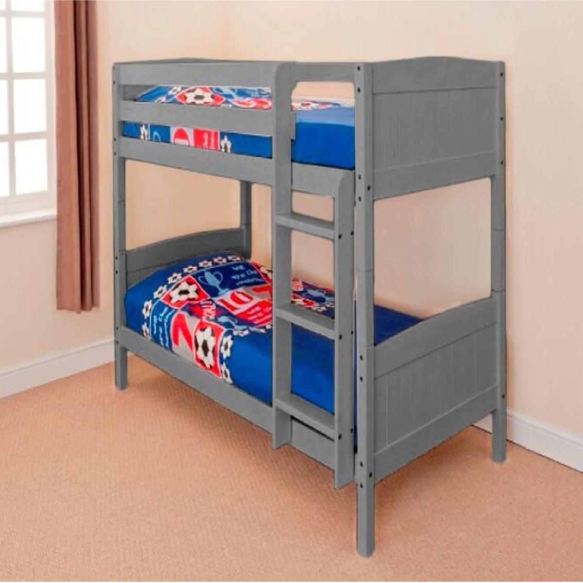 This bunk bed is made from solid sturdy pine with a natural varnish finish, a whitewash or grey finish. The ladder has wide foot rungs, making climbing safe, very easy and discomfort free. It features a flexible ladder position allowing you to place the bunk bed In the best position that suits your child's bedroom. It also has the additional feature of being able to be split into 2 beds. The bunk features fixed slatted bases to provide rigidity and support, with solid headboard and footboards.