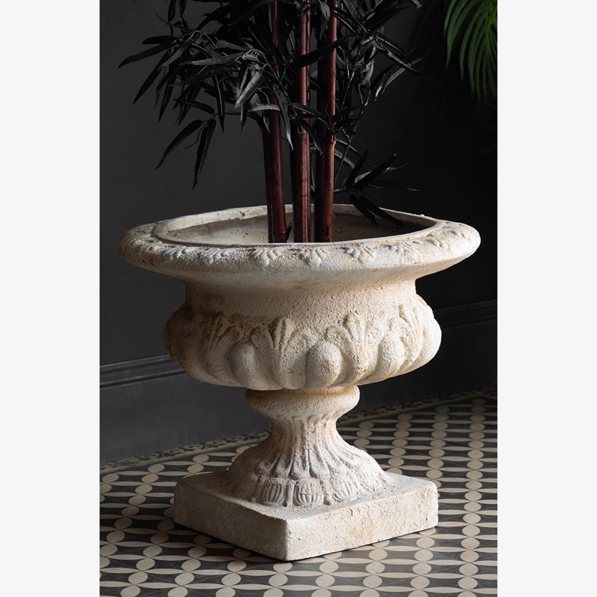 <!--td --> Meet the Classical Stone-Effect Planter, the ultimate plant pot for your garden patio, or grand entrance. This large planter isn’t just for holding plants – it’s here to steal the show. With its off-white, imperfectly weathered finish, it looks just like a timeworn stone planter from an old European courtyard – pure, timeless and naturally dramatic. Whether you’re filling it with lush greenery, sculptural topiaries or cascading florals, this outdoor planter elevates everything it touches. Its imposing size and classic stone-effect design bring an effortless grandeur to any space. Think classical charm meets understated elegance. Pure, classic beauty that lasts. - Classical Stone-Effect Planter - Measures: D57cm x H49cm - Material: Glass Fibre