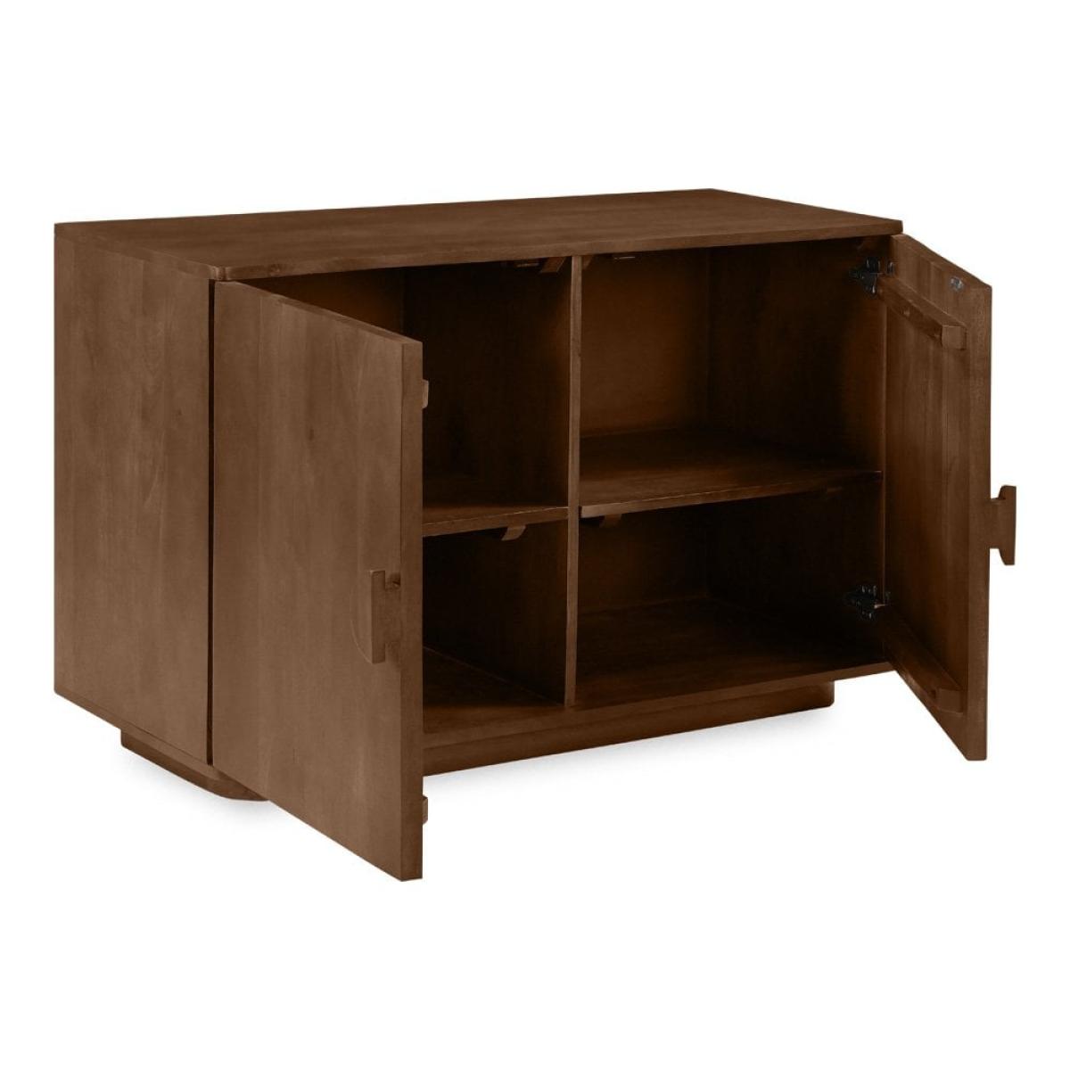 I love how the chunky silhouette and rich Mango wood finish give this sideboard a warm, contemporary feel. It works beautifully in both modern and transitional interiors, providing a sophisticated storage solution without feeling bulky. To style it effectively, consider layering a mix of sleek and textured pieces on top-think a simple vase alongside some curated books or decorative bowls. Practical tips include keeping the surface clutter-free to highlight the natural grain or using lighting, such as a table lamp or LED strip, to accentuate the wood’s colour and texture at night. This piece is versatile enough to work in living rooms, dining areas, or even bedrooms, adding warmth and character wherever it’s placed.