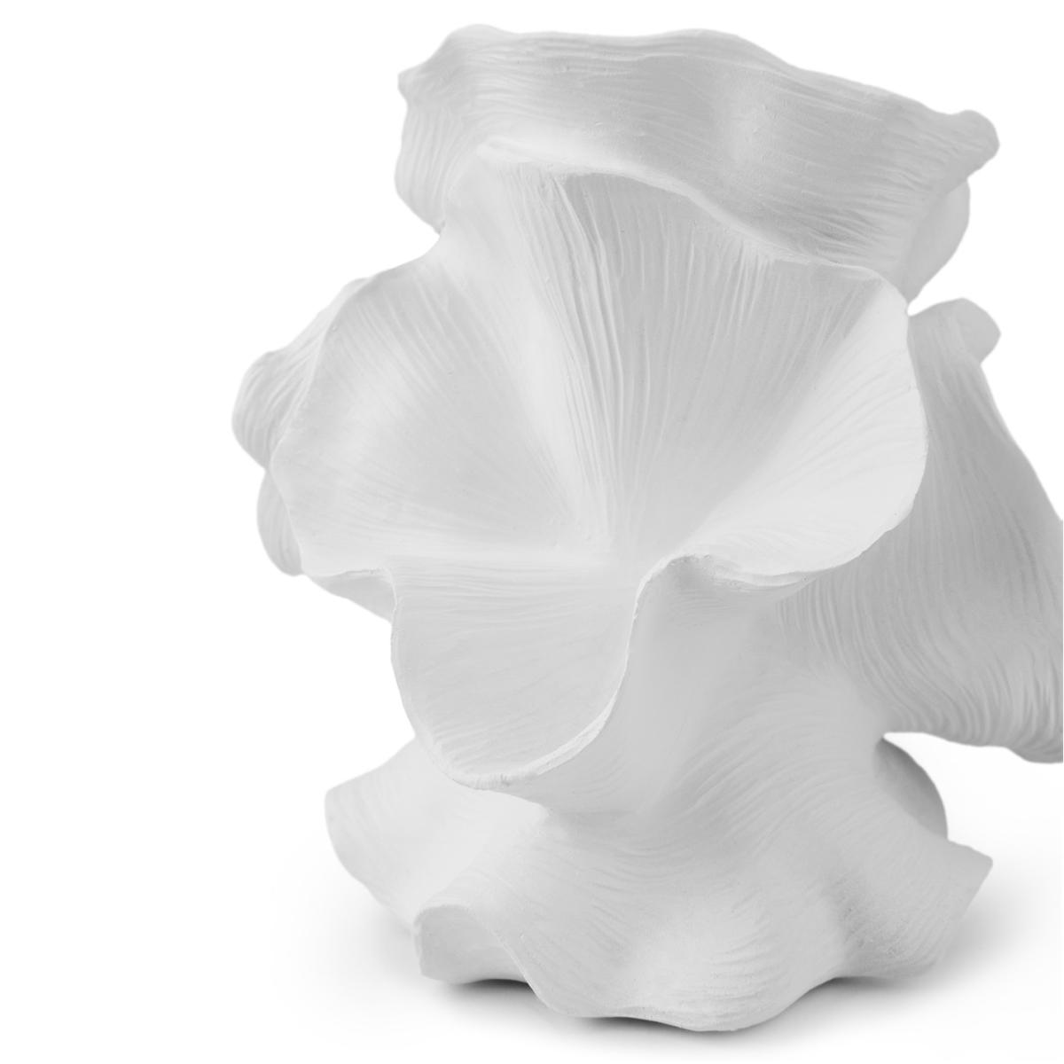 I love this piece because of its bold, sculptural form and versatile white finish, which makes it a striking addition to various interiors. It works well in both contemporary and minimalist settings, where its organic shape can serve as a focal point on a side table or console. For practical styling, consider pairing it with greenery or placing it on a textured tray to highlight its shape without overwhelming the space. This sculpture also lends itself nicely to being displayed alongside other monochromatic accessories, creating a cohesive and thoughtfully curated look.