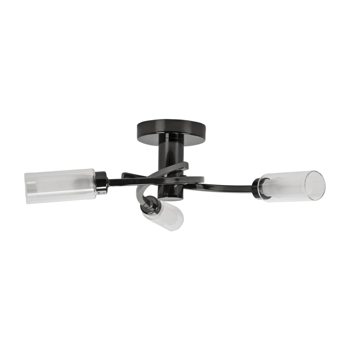 Modern 3 way swirl arm ceiling light in a black chrome finish with clear and frosted glass shades. An ideal flush interior light for living rooms, bedrooms, hallways, kitchens and more. Ceiling lights are usually the main source of illuminating a room but with the many styles on offer today, also become a main focal point or talking point. The right fitting can make a real style statement and complete your living space look.