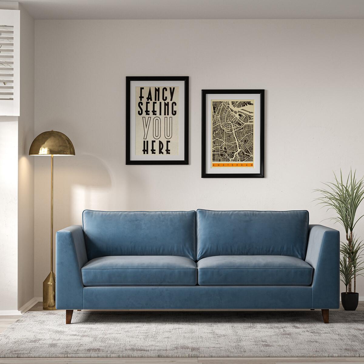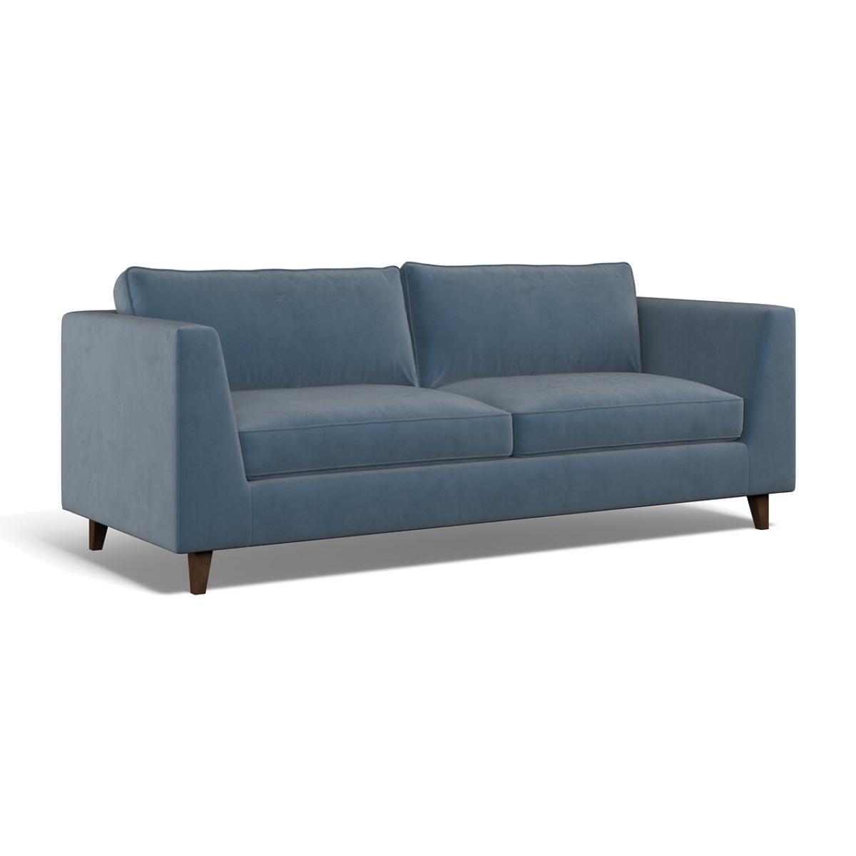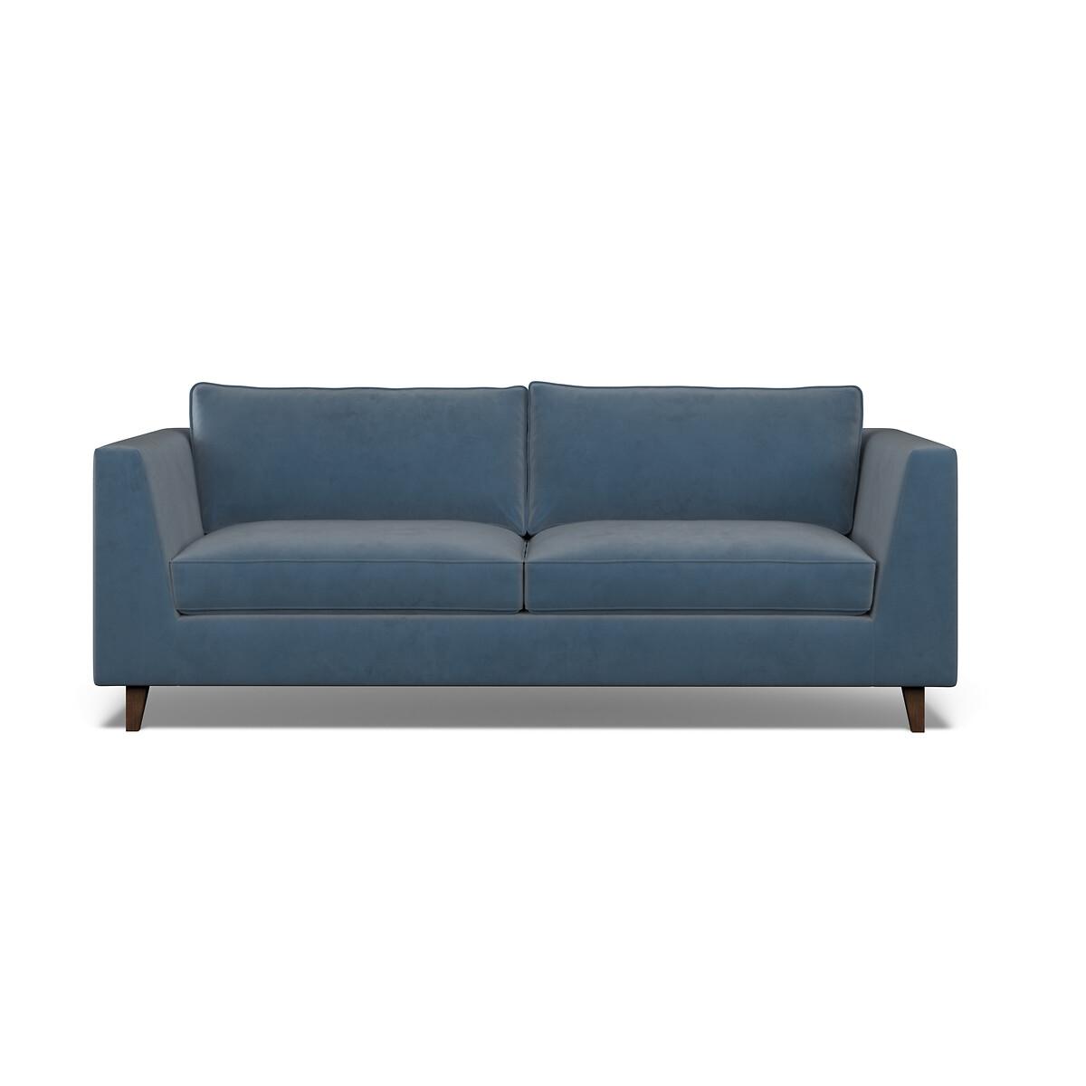 A fine-looking sofa if ever we saw one. The Claudia has a tailored apperance, with modern shapes and angled sides. But don't let these clean lines fool you - the Claudia is as comfortable as it is contemporary. A blissfully squidgy feathery seat is paired with a deep cushioned back, promising the comfiest sit. Choose from our soft brushed fabric for ultimate cosiness or velvet for luxe living. The Claudia is available as a 2 seater or a 3 seater sofa. Product details• Velvet - An elegant velvet with a dense and matte finish, perfect for those wanting a rich and luxurious look. A flat finish pile makes it difficult for the material to snag – ideal if you live with pets and sure to prove durable for years to come. Check it's right for you - order a FREE swatch above.• Created with medium density foam fillings for a sofa with a level of comfort suitable for most. • Luxury seating cushions made from a blend of foam, feather and fibres offer the best of both words. A foam core with a feather wrap gives the cushion increased resilience and support without compromising on comfort, whilst fibre fillings add softness and body. Feather fillings allow air to circulate better, whilst being great at retaining heat in colder months. • Fibre backs provide extra softness and give you that "sink in" feeling.• Just flip to freshen up - the back cushions are fully finished both sides and reversible so it's easy to keep your sofa looking its best. Seat cushions are not reversible but are removable. • Both seat and back covers are removable (zip fastening)• FSC® solid beech hardwood frame - made of wood from responsibly managed forests that provide environmental, social and economic benefits.• Tapered feet crafted entirely from solid wood ensure durability and stability.• Removable feet.• Lovingly handmade in the UK.All our made to order sofas are carefully manufactured in the UK.Each hardwood frame is dowelled, glued, and screwed before being paired with the finest fabrics and fillings. And it doesn't stop there - for customer peace of mind and safety, all frames and fabrics are rigorously examined, inspected, and tested to the highest standards. All filling material(s) and covering fabric(s) meet the requirements for resistance to cigarette and match ignition in the 1988 safety regulations. This sofa comes with a 3 year manufacturer warranty from date of delivery (subject to terms and conditions)Product composition• Fabric - Velvet (100% polyester)• Seat fillings - foam/fibre/feather• Back Fillings - Fibre• Frame - Beech Hardwood (FSC), OSB (UK origin, FSC)• Feet - Solid Wood. Product Dimensions Overall width: 219 cm. Overall depth: 91 cm. Overall height: 89 cm. Seat height: 48 cm. Seat depth: 58 cm. Seat width between the arms: 171 cm Arm width (at highest point): 13 cm. Back height (from base): 73 cm. Back height (from seat): 40 cm. Arm height (from floor): 77 cm. Arm height (from seat): 29 cm Clearance to floor (leg height): 16 cm. Please remember to measure your available space before ordering to be sure your sofa will fit. Don't forget to measure accessways and corners, and consider any obstacles. Package DimensionsL22. 0 cm x W91 cm x H73 cm, Weight 55 kg. This product will be dispatched by one of our trusted suppliers. You’ll be contacted by their selected courier about your delivery. Your product will be delivered to your room of choice. Feet may be assembled on arrival. BELFI01