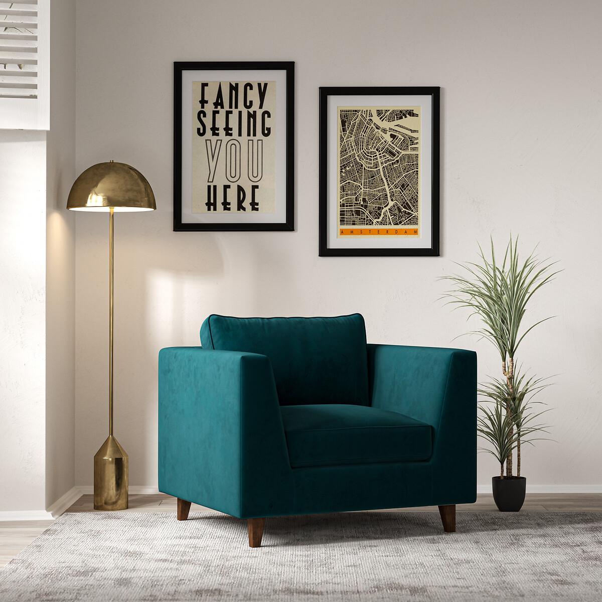 A fine-looking sofa if ever we saw one. The Claudia has a tailored apperance, with modern shapes and angled sides. But don't let these clean lines fool you - the Claudia is as comfortable as it is contemporary. A blissfully squidgy feathery seat is paired with a deep cushioned back, promising the comfiest sit. Choose from our soft brushed fabric for ultimate cosiness or velvet for luxe living. The Claudia is available as a 2 seater or a 3 seater sofa. Product details• Velvet - An elegant velvet with a dense and matte finish, perfect for those wanting a rich and luxurious look. A flat finish pile makes it difficult for the material to snag – ideal if you live with pets and sure to prove durable for years to come. Check it's right for you - order a FREE swatch above.• Created with medium density foam fillings for a sofa with a level of comfort suitable for most. • Luxury seating cushions made from a blend of foam, feather and fibres offer the best of both words. A foam core with a feather wrap gives the cushion increased resilience and support without compromising on comfort, whilst fibre fillings add softness and body. Feather fillings allow air to circulate better, whilst being great at retaining heat in colder months. • Fibre backs provide extra softness and give you that "sink in" feeling.• Just flip to freshen up - the back cushions are fully finished both sides and reversible so it's easy to keep your sofa looking its best. Seat cushions are not reversible but are removable. • Both seat and back covers are removable (zip fastening)• FSC® solid beech hardwood frame - made of wood from responsibly managed forests that provide environmental, social and economic benefits.• Tapered feet crafted entirely from solid wood ensure durability and stability.• Removable feet.• Lovingly handmade in the UK.All our made to order sofas are carefully manufactured in the UK.Each hardwood frame is dowelled, glued, and screwed before being paired with the finest fabrics and fillings. And it doesn't stop there - for customer peace of mind and safety, all frames and fabrics are rigorously examined, inspected, and tested to the highest standards. All filling material(s) and covering fabric(s) meet the requirements for resistance to cigarette and match ignition in the 1988 safety regulations. This sofa comes with a 3 year manufacturer warranty from date of delivery (subject to terms and conditions)Product composition• Fabric - Velvet (100% polyester)• Seat fillings - foam/fibre/feather• Back Fillings - Fibre• Frame - Beech Hardwood (FSC), OSB (UK origin, FSC)• Feet - Solid Wood. Product Dimensions Overall width: 105 cm. Overall depth: 91 cm. Overall height: 89 cm. Seat height: 48 cm. Seat depth: 58 cm. Seat width between the arms: 57 cm Arm width (at highest point): 13 cm. Back height (from base): 73 cm. Back height (from seat): 40 cm. Arm height (from floor): 77 cm. Arm height (from seat): 29 cm Clearance to floor (leg height): 16 cm. Please remember to measure your available space before ordering to be sure your sofa will fit. Don't forget to measure accessways and corners, and consider any obstacles. Package DimensionsL9. 7 cm x W91 cm x H90 cm, Weight 37.5 kg. This product will be dispatched by one of our trusted suppliers. You’ll be contacted by their selected courier about your delivery. Your product will be delivered to your room of choice. Feet may be assembled on arrival. BELFI01