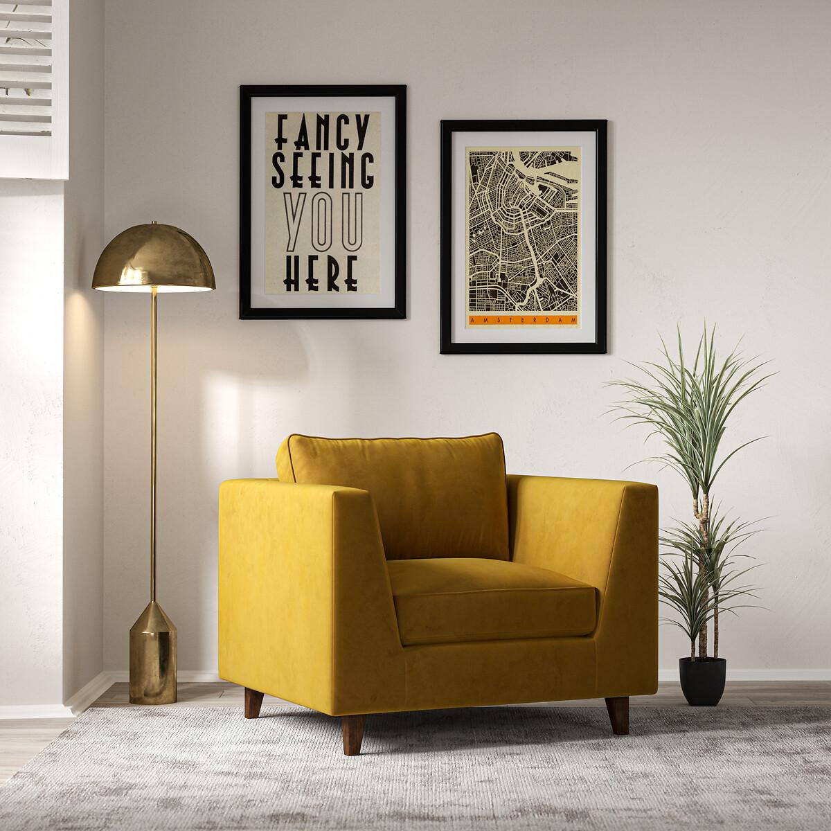A fine-looking sofa if ever we saw one. The Claudia has a tailored apperance, with modern shapes and angled sides. But don't let these clean lines fool you - the Claudia is as comfortable as it is contemporary. A blissfully squidgy feathery seat is paired with a deep cushioned back, promising the comfiest sit. Choose from our soft brushed fabric for ultimate cosiness or velvet for luxe living. The Claudia is available as a 2 seater or a 3 seater sofa. Product details• Velvet - An elegant velvet with a dense and matte finish, perfect for those wanting a rich and luxurious look. A flat finish pile makes it difficult for the material to snag – ideal if you live with pets and sure to prove durable for years to come. Check it's right for you - order a FREE swatch above.• Created with medium density foam fillings for a sofa with a level of comfort suitable for most. • Luxury seating cushions made from a blend of foam, feather and fibres offer the best of both words. A foam core with a feather wrap gives the cushion increased resilience and support without compromising on comfort, whilst fibre fillings add softness and body. Feather fillings allow air to circulate better, whilst being great at retaining heat in colder months. • Fibre backs provide extra softness and give you that "sink in" feeling.• Just flip to freshen up - the back cushions are fully finished both sides and reversible so it's easy to keep your sofa looking its best. Seat cushions are not reversible but are removable. • Both seat and back covers are removable (zip fastening)• FSC® solid beech hardwood frame - made of wood from responsibly managed forests that provide environmental, social and economic benefits.• Tapered feet crafted entirely from solid wood ensure durability and stability.• Removable feet.• Lovingly handmade in the UK.All our made to order sofas are carefully manufactured in the UK.Each hardwood frame is dowelled, glued, and screwed before being paired with the finest fabrics and fillings. And it doesn't stop there - for customer peace of mind and safety, all frames and fabrics are rigorously examined, inspected, and tested to the highest standards. All filling material(s) and covering fabric(s) meet the requirements for resistance to cigarette and match ignition in the 1988 safety regulations. This sofa comes with a 3 year manufacturer warranty from date of delivery (subject to terms and conditions)Product composition• Fabric - Velvet (100% polyester)• Seat fillings - foam/fibre/feather• Back Fillings - Fibre• Frame - Beech Hardwood (FSC), OSB (UK origin, FSC)• Feet - Solid Wood. Product Dimensions Overall width: 105 cm. Overall depth: 91 cm. Overall height: 89 cm. Seat height: 48 cm. Seat depth: 58 cm. Seat width between the arms: 57 cm Arm width (at highest point): 13 cm. Back height (from base): 73 cm. Back height (from seat): 40 cm. Arm height (from floor): 77 cm. Arm height (from seat): 29 cm Clearance to floor (leg height): 16 cm. Please remember to measure your available space before ordering to be sure your sofa will fit. Don't forget to measure accessways and corners, and consider any obstacles. Package DimensionsL9. 7 cm x W91 cm x H90 cm, Weight 37.5 kg. This product will be dispatched by one of our trusted suppliers. You’ll be contacted by their selected courier about your delivery. Your product will be delivered to your room of choice. Feet may be assembled on arrival. BELFI01