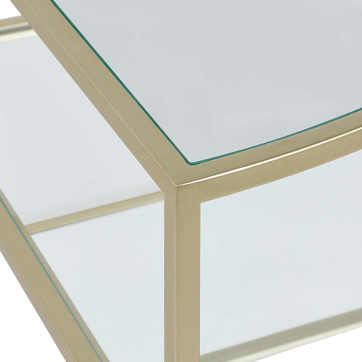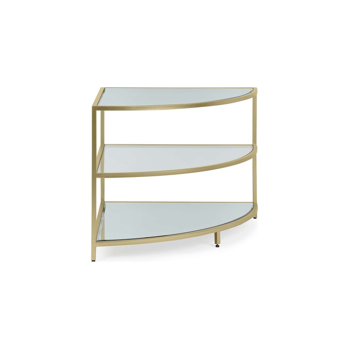 Dunelm Exclusive - Designed and Developed by Dunelm Featuring tempered glass tops, mirrored accents, and stunning gold effect finishes, the glamorous Claudia range would add a modern, elegant touch to any room. With its sophisticated, space-saving design, the Claudia corner TV stand can accommodate up to a 40 inch TV, as well as plenty of consoles and media devices thanks to the spacious, open shelves. This TV stand boasts gorgeous mirrored and clear glass shelves to create a modern, fashionable look. Item fully assembled.