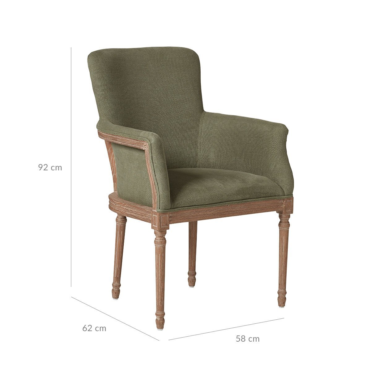 The Regency-style design of this chair inspired its name - Claverton is a small village near Bath, famous for its stunning Georgian architecture. The Claverton gracefully walks the line between dining chair and armchair, looking just as at home in your sitting room as at the head of your table. Its dark green linen upholstery and solid oak frame give it a 21st-century twist.