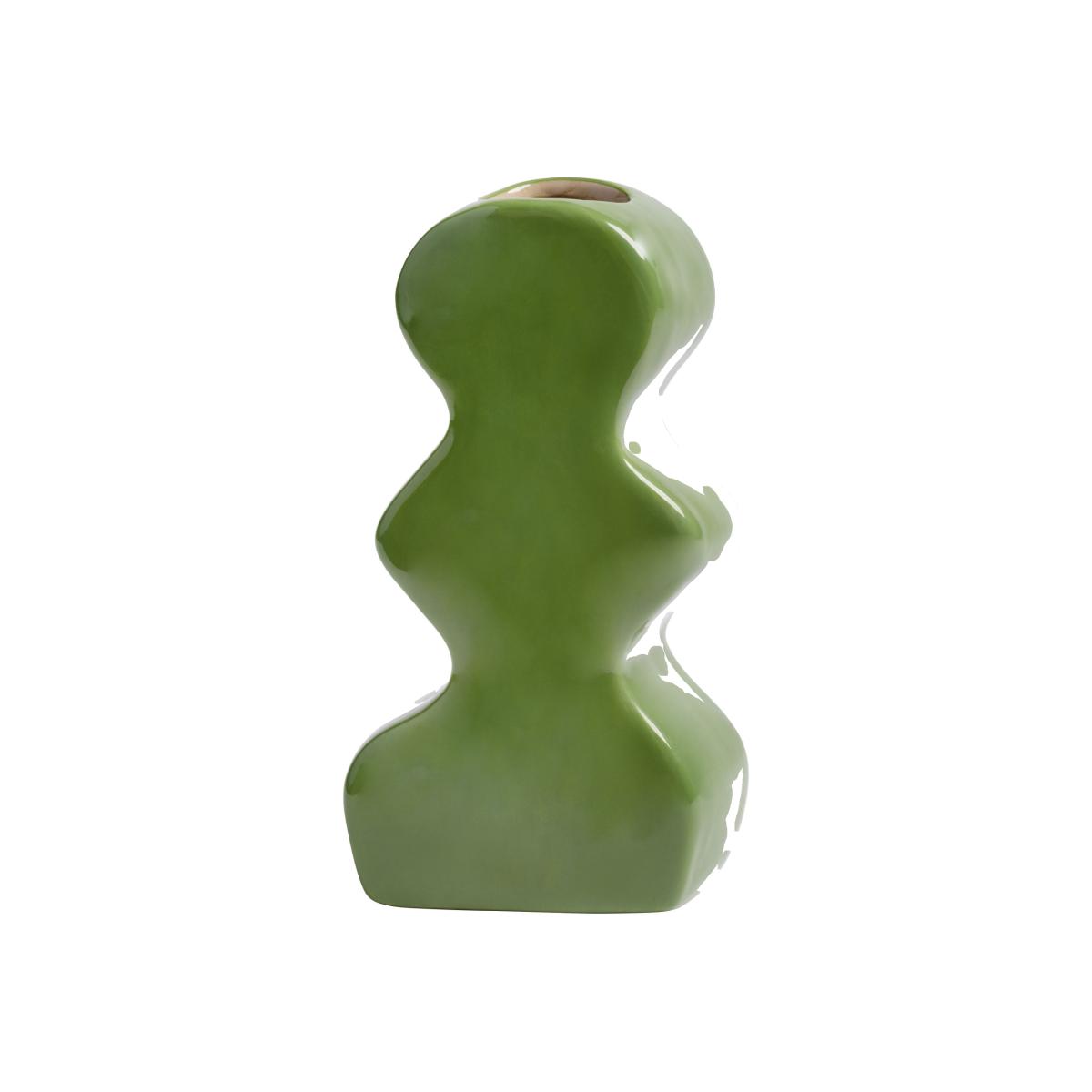 I love this green ceramic vase for its playful, sculptural shape that adds a modern touch to any space. Its relaxed, organic form works especially well in contemporary or minimalist interiors, providing a pop of colour and interest without overwhelming the decor. It’s a versatile piece that can be styled as a standalone accent or combined with a small bouquet of dried or fresh flowers for an effortless, curated look. For practical styling, consider placing it on a mantle, sideboard, or open shelf where it can be appreciated up close. Its height makes it ideal for grouping with other vases or decorative objects, creating a layered and dynamic display.