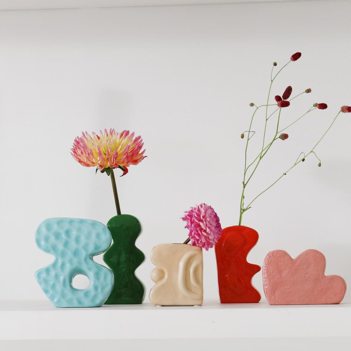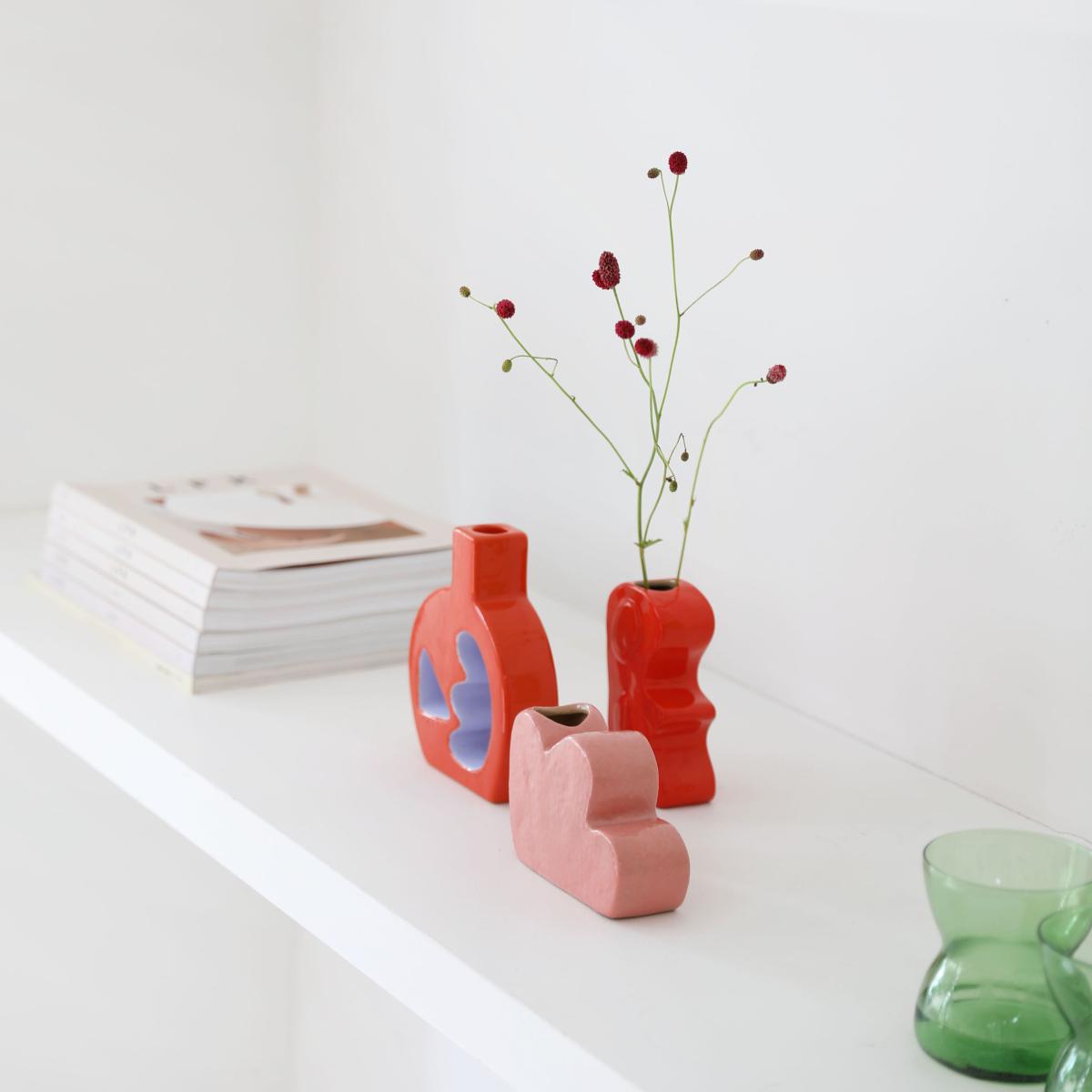 The Clay collection is made up of an assortment of ceramic vases with irregular, naive shapes, reminiscent of the abstract motifs of Matisse or the cut-outs of popular visual artists. Singular, functional mini-works of art, to compose or decompose as required, to awaken our aesthetic sense. Perfect for creating an arty decor!