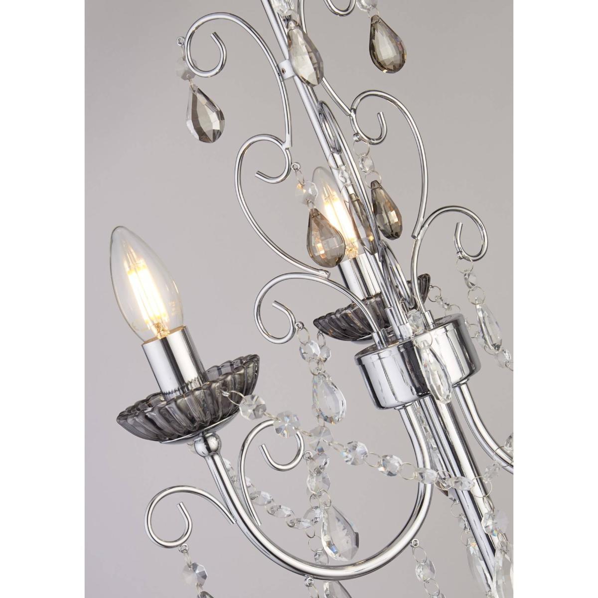 The Clea Floor Lamp adds a dazzling accent to your home. 57cm. 35cm. 40w. 3 x E14 Light Bulb ( not included ). The floor lamp has a combination of delicate droplets and ornate details that lends to the appearance of a baroque chandelier. The faceted acrylic beads allow light to shine and bounce off the crystals to emit a shimmering wash of light. The opulent floor lamp looks equally as impressive when the light is switched on or off.