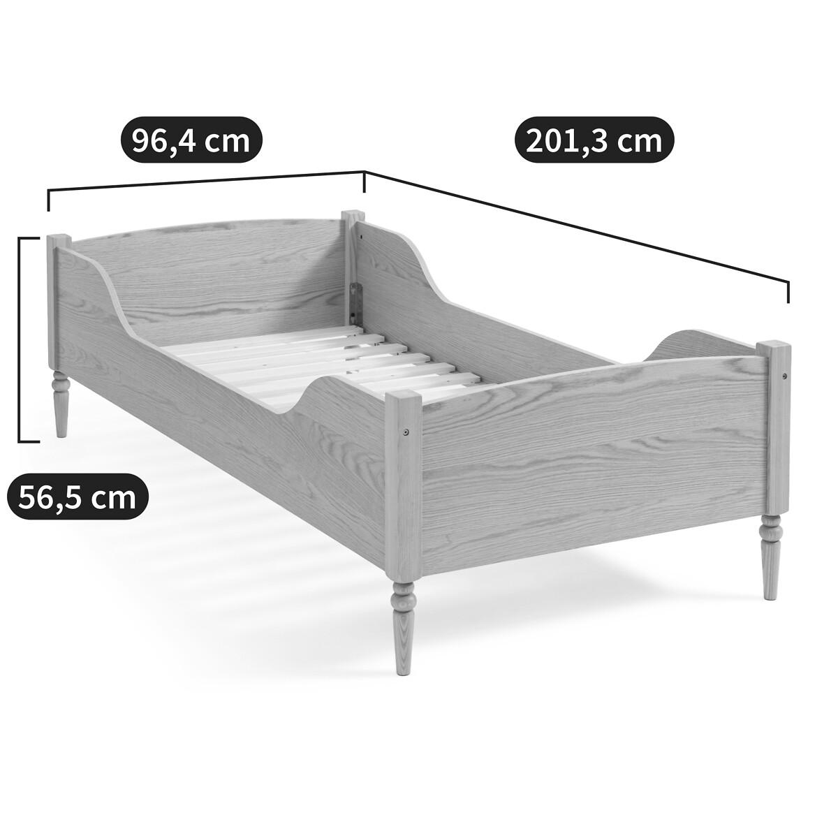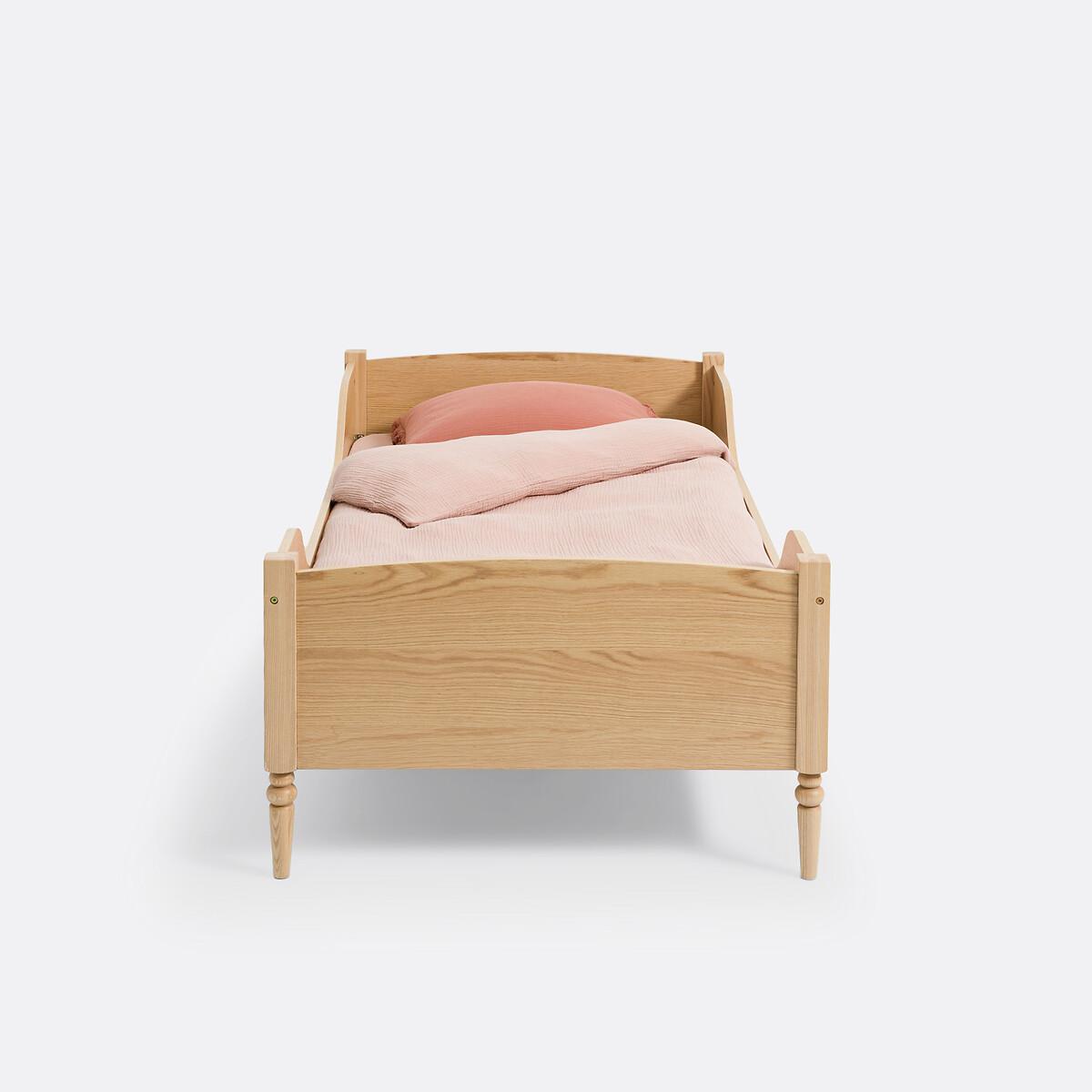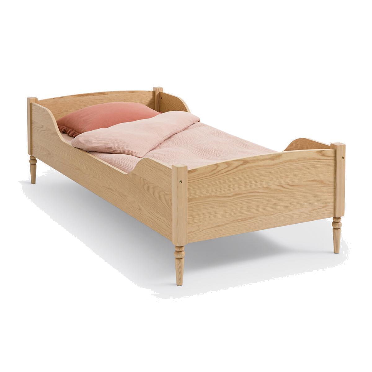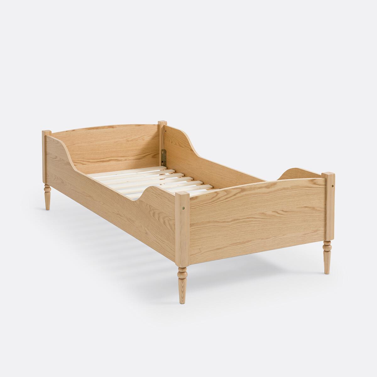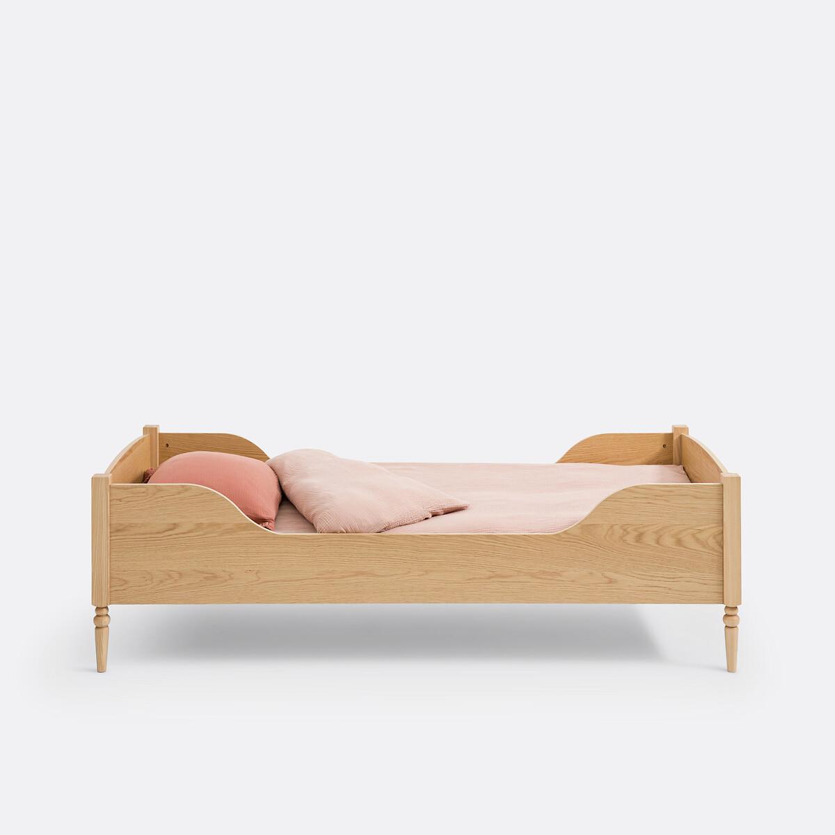 The Cléa children's bed. Delightfully retro with its curves and turned legs, the Clea child's bed brings a romantic touch that is still on trend. Product Details • Oak veneered MDF structure • Solid ash legs • Supplied with slatted base • Single: Sleeping area 90 x 190cm Dimensions • Length: 201.3cm • Depth: 96.4cm • Height: 56.5cmDelivery:. This product will be delivered to your home. Note! Please check that all access points are large enough to accommodate your delivery (doors, stairs, lifts). Dimensions and weight of parcel2 parcels • L105 x H66.5 x D20.5cm, 23kg • L198 x H45 x D12cm, 17kg