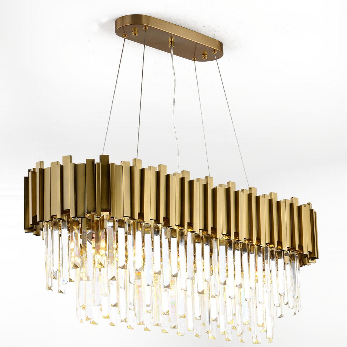 5 Bulbs Ractangle Dinning Light: 90x32cm. Number of lights: E14 x 5. Finish: Electroplated. Materials: K9 Crystal and Metal Dimmable with E14 Dimmable Bulbs. Lighting direction: ambient light. Power:Max 40W x 5 E14 Net weight: 10.6 kg. Body Width: 30 cm. Body Length: 90 cm. Body Height: 32 cm. Chain Length: 100 cm (Adjustable)6 Bulbs Round Diameter: 55cm. Number of lights: E14 x 6. Finish: Electroplated. Materials: K9 Crystal and Metal Dimmable with E14 Dimmable Bulbs. Lighting direction: ambient light. Power:Max 40W x 6 E14 Net weight: 10.00 kg. Width: 55 cm. Body Height: 30 cm. Chain Length: 100 cm (Adjustable)10 Bulbs Round Diameter: 75cm. Number of lights: E14 x 10. Finish: Electroplated. Materials: K9 Crystal and Metal Dimmable with E14 Dimmable Bulbs. Lighting direction: ambient light. Power:Max 40W x 10 E14. Net weight: 14.50 kg. Width: 75 cm. Body Height: 30 cm. Chain Length: 100cm (Adjustable)12 Bulbs Round Diameter: 95cm. Number of lights: E14 x 12. Finish: Electroplated. Materials: K9 Crystal and Metal Dimmable with E14 Dimmable Bulbs. Lighting direction: ambient light. Power:Max 40W x 12 E14 Net weight: 21.50 kg. Width: 95 cm. Body Height: 30 cm. Chain Length: 100 cm (Adjustable)