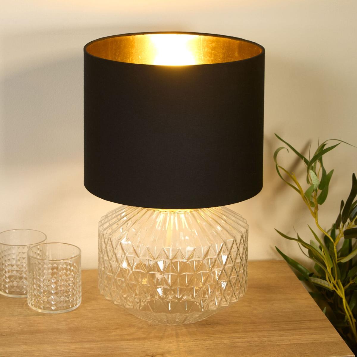 I love this clear glass lamp with a black shade for its sleek, contemporary look that adds a touch of sophistication to any space. It works particularly well in modern or minimalist interiors, where its clean lines can really shine. Practical styling tips include pairing it with textured or patterned accessories to create visual interest, and positioning it on side tables or consoles to add ambient lighting without overpowering the room. Its versatile black shade makes it easy to incorporate into both monochrome schemes and more colourful interiors, making it a reliable choice for a variety of styles.
