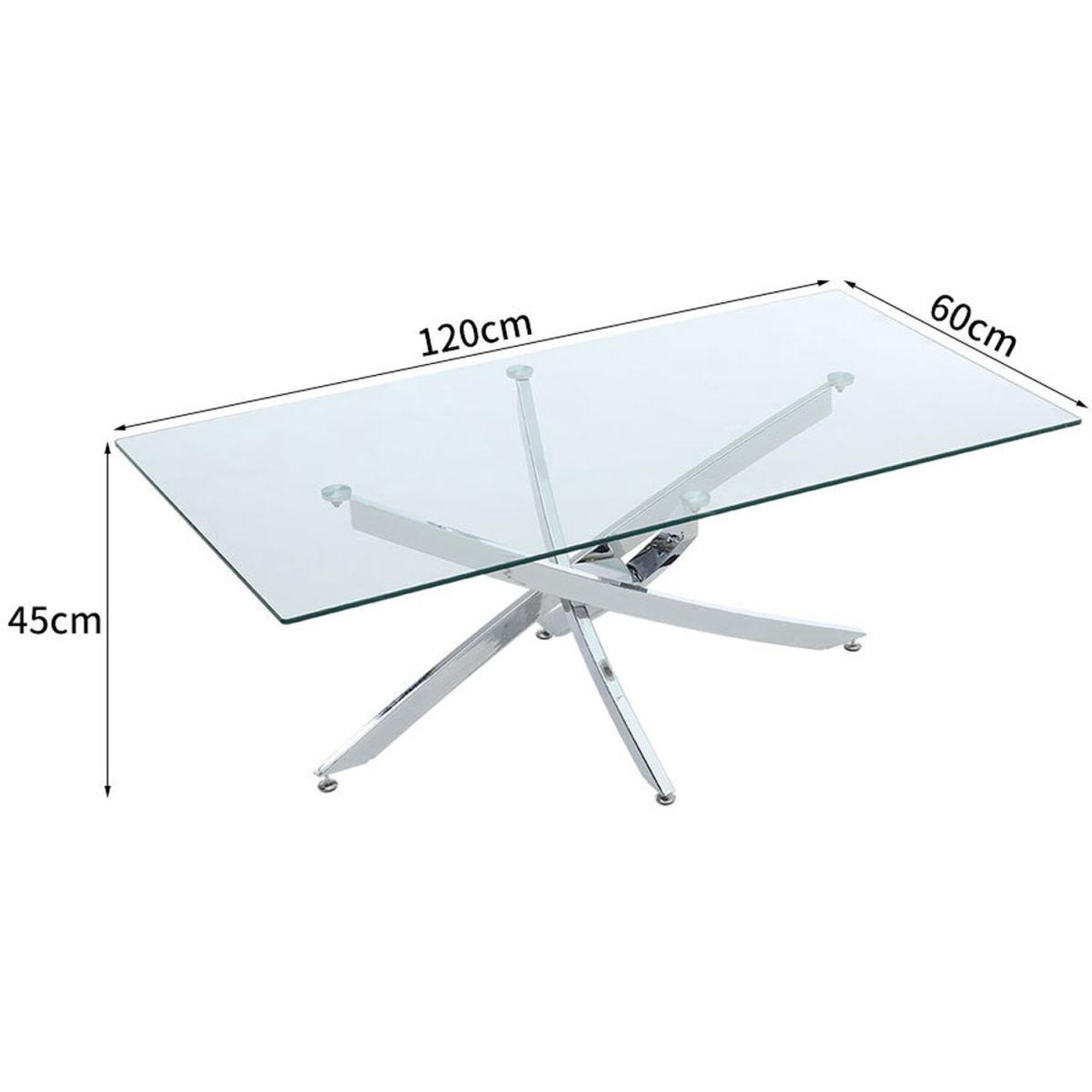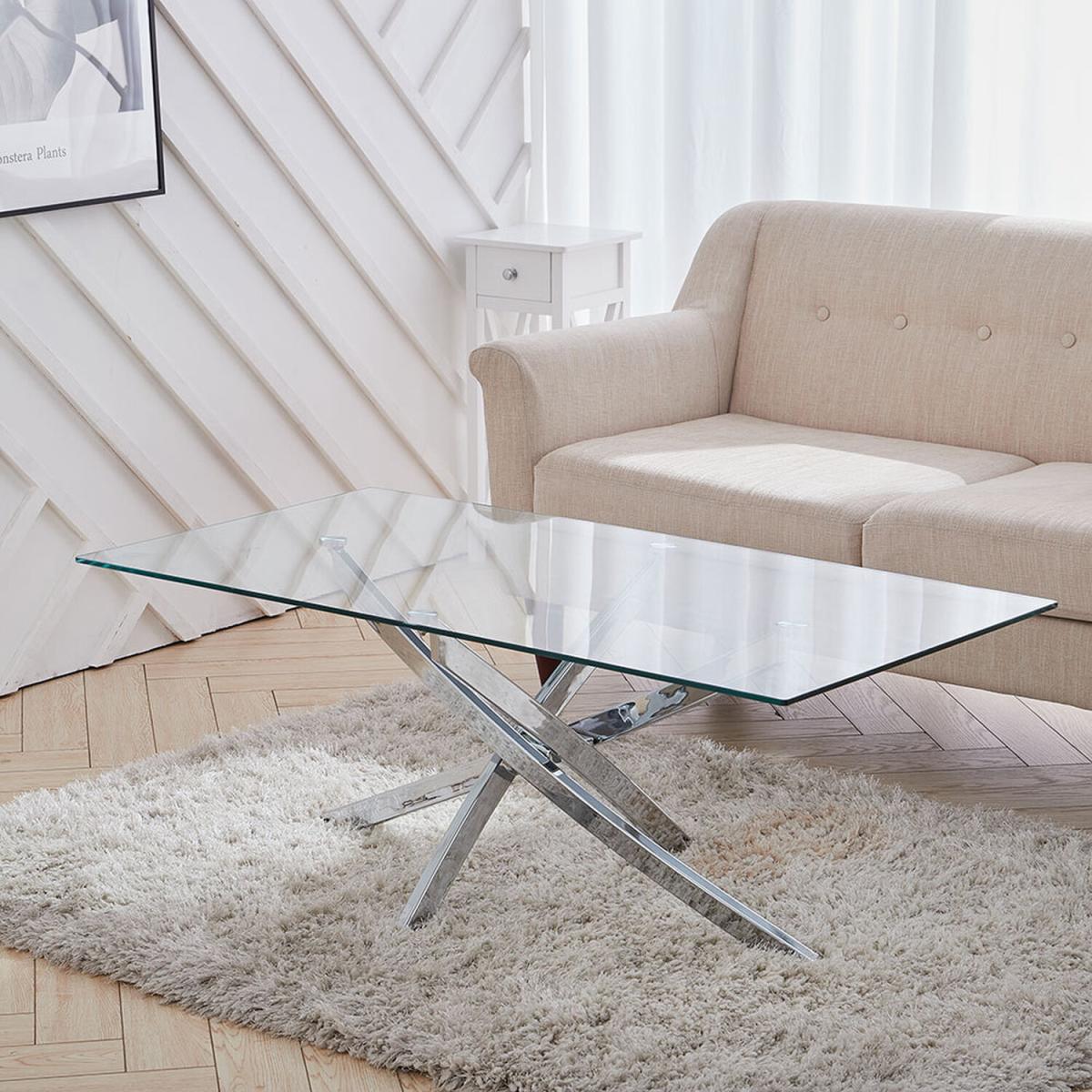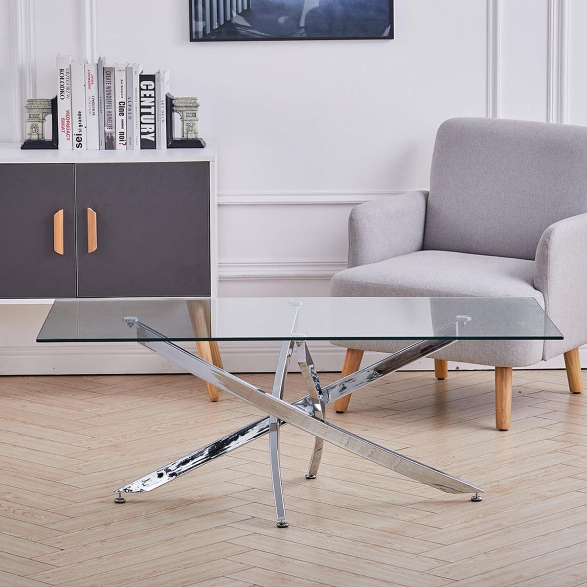 Classic clear glass surface tempered glass top delicate shape design, make your room more stylish and fashionable, sturdy iron frame, durable and lasting use. This simple coffee table, reasonable in size, rubber foot pads to protect the floor from damage, classic combination of tempered glass and chrome with a contemporary twist, the side table is a must-have focal point for any modern living space. This spectacular table is a perfect balance of design and function and is a must-have centre-piece for stylish interiors, office reception table for waiting room, this living room dining table is sent to you flat packed, easy to put together based on the instruction.