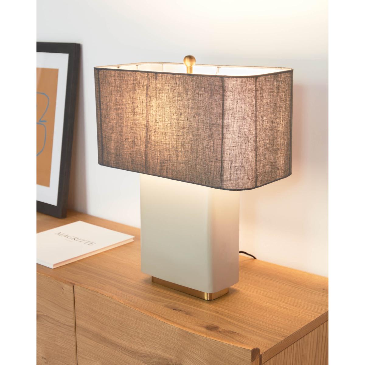 Clelia table lamp in metal with beige and dark grey painted finish UK adapter