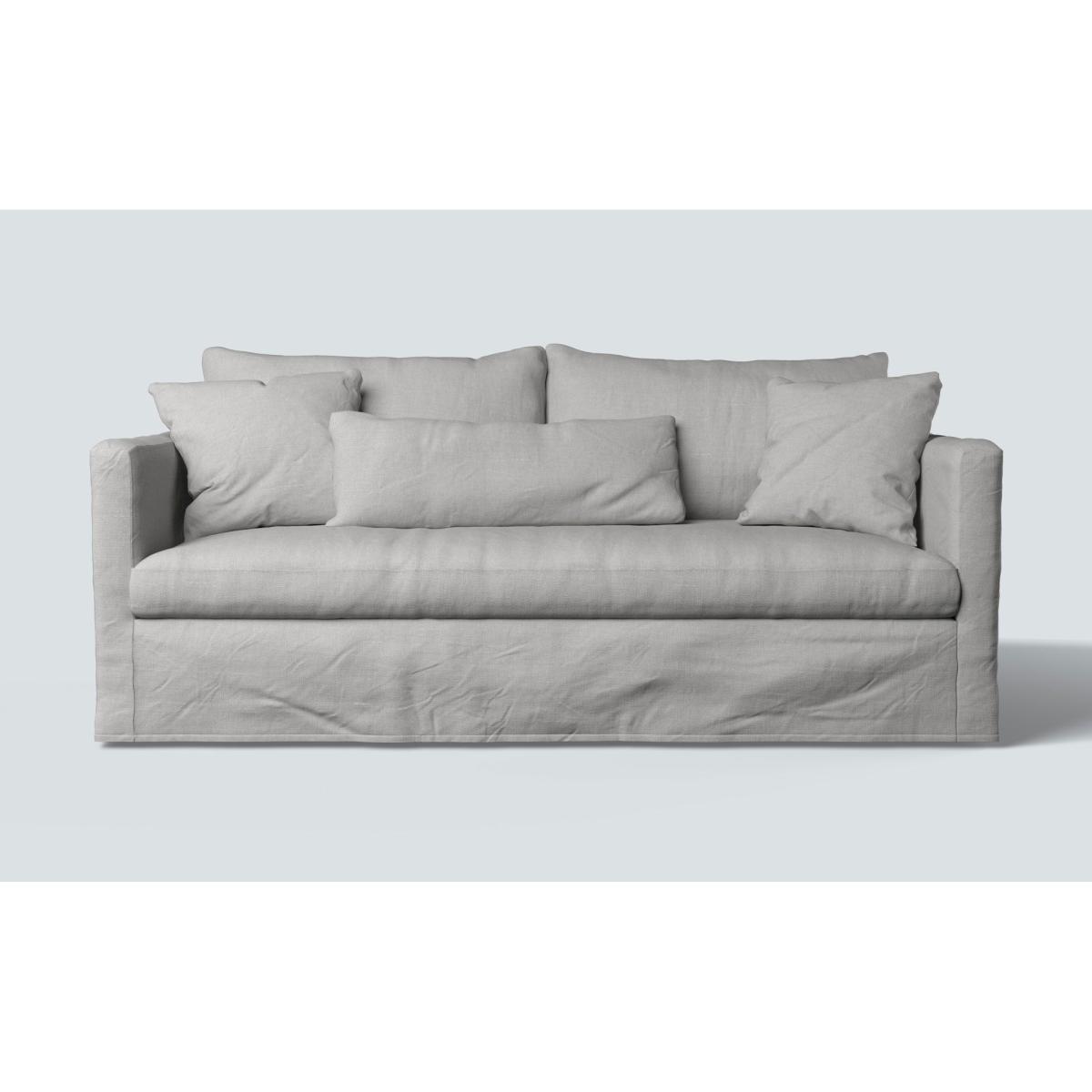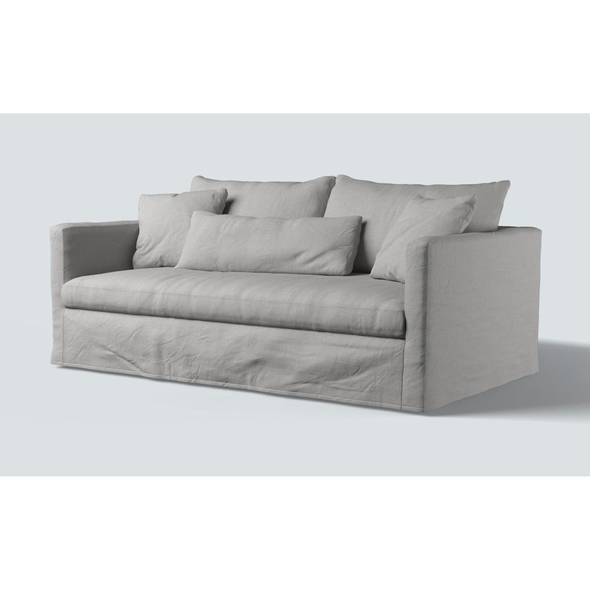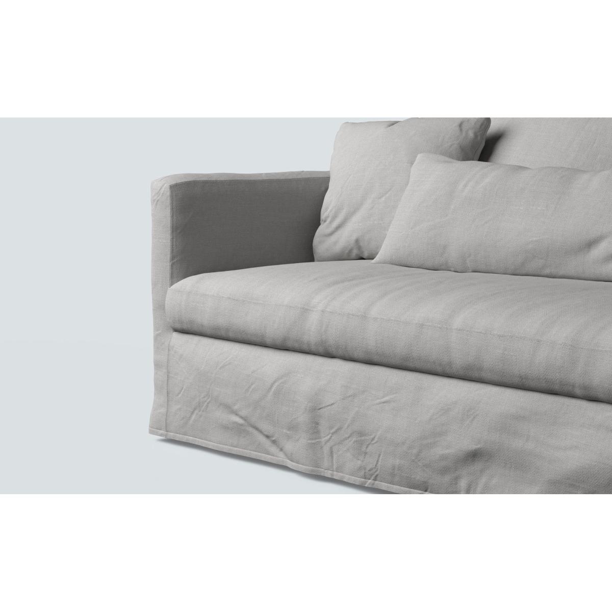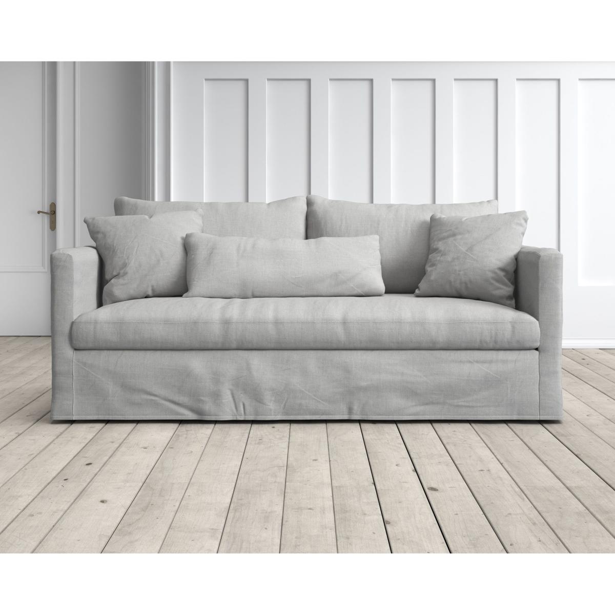 Our Clementine sofa is the ultimate in coastal cool, with clean lines, loose linen covers and hand-turned oak feet for a laid-back, understated feel. Each is crafted with a sprung base, added scatter cushions and a bolster. Complete your look with the Clementine footstool, sink back and relax... Pictured: 3 seater sofa and footstool. Handmade in 8-10 weeks and then delivered usually within 10 working days. Need your sofa sooner? We offer our best-selling 3 Seater Clementine Sofa in Natural Belgium Linen as part of our ready to deliver sofa collection. If you would like to order a second set of loose covers for your sofa then please get in touch with our Customer Service team.