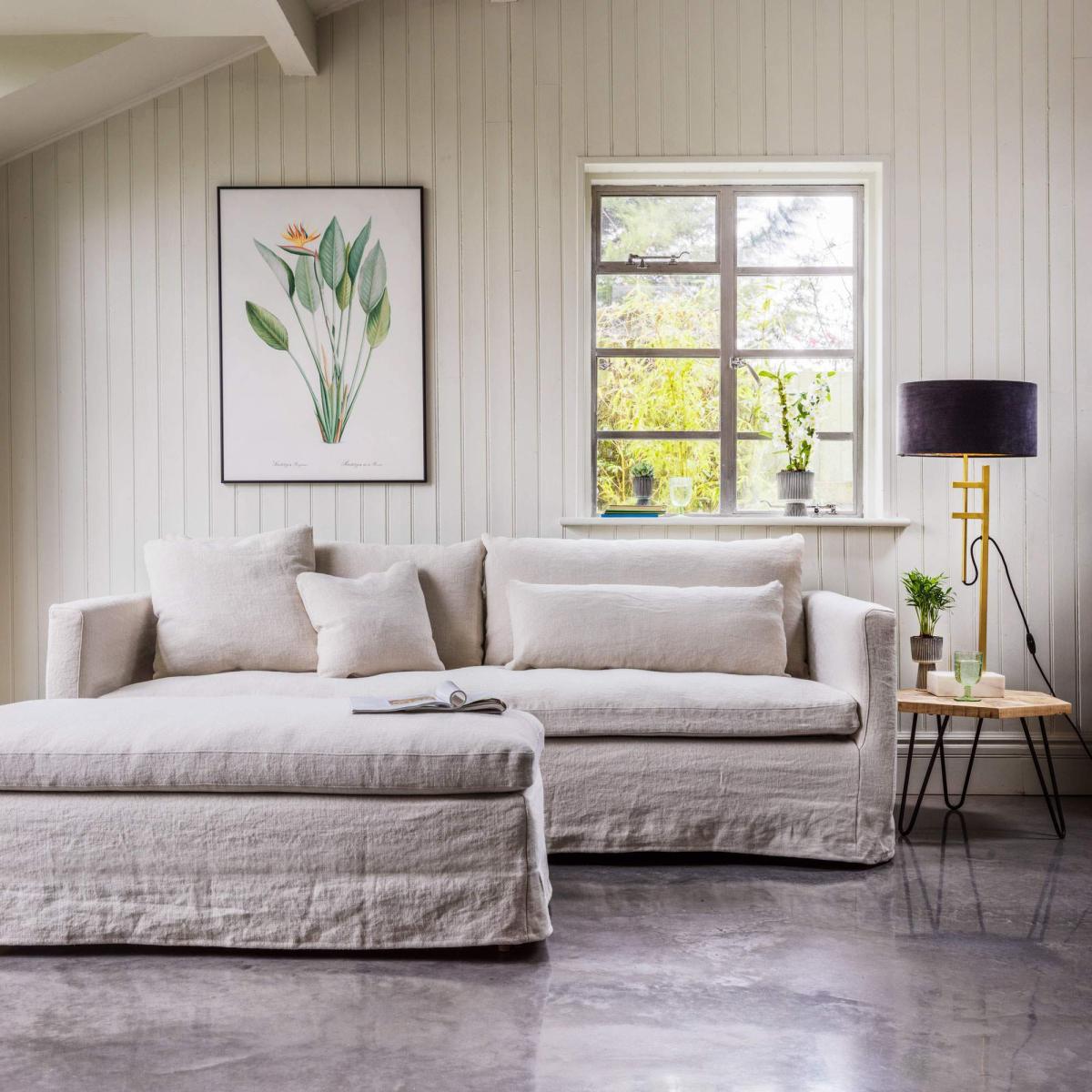 Our Clementine sofa is the ultimate in coastal cool, with clean lines, loose linen covers and hand-turned oak feet for a laid-back, understated feel. Each is crafted with a sprung base, added scatter cushions and a bolster. Complete your look with the Clementine footstool, sink back and relax... Pictured: 3 seater sofa and footstool. Handmade in 8-10 weeks and then delivered usually within 10 working days. Need your sofa sooner? We offer our best-selling 3 Seater Clementine Sofa in Natural Belgium Linen as part of our ready to deliver sofa collection. If you would like to order a second set of loose covers for your sofa then please get in touch with our Customer Service team.