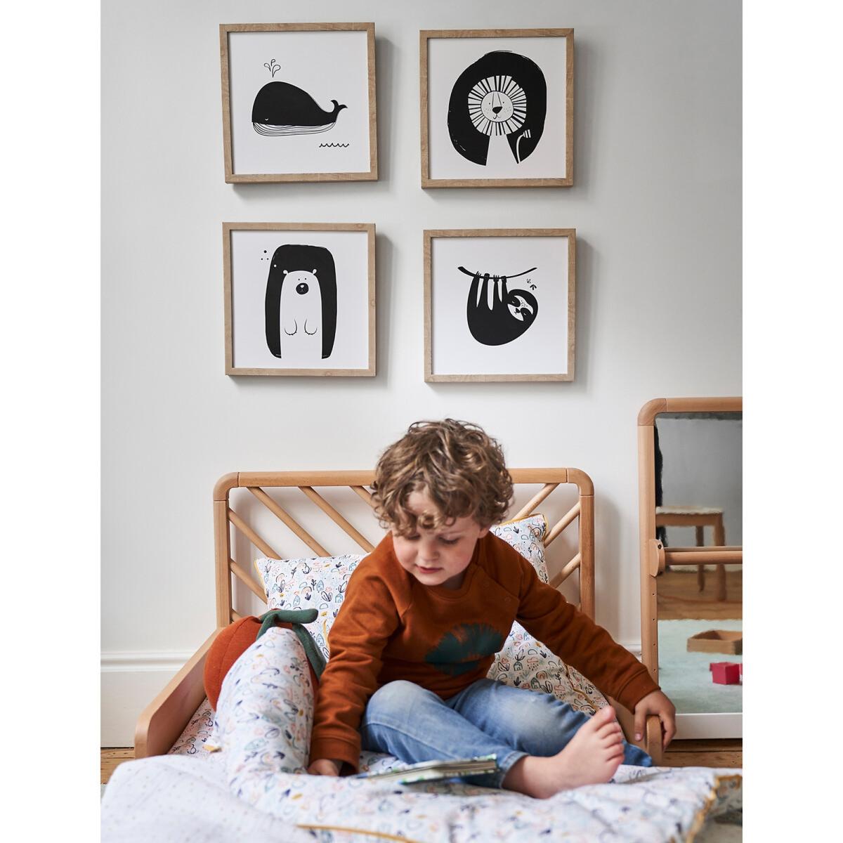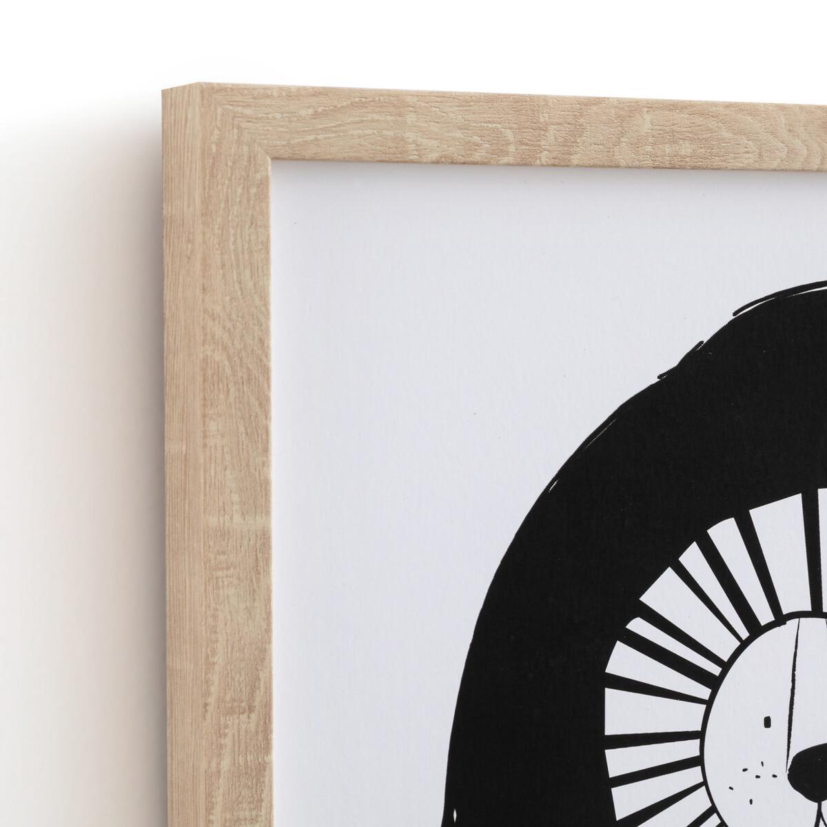 I love this framed lion print for its playful yet sophisticated design, making it a great statement piece for a child's bedroom or nursery. Its monochrome palette allows it to blend easily with various colour schemes, adding a touch of character without overwhelming the space. It works well in both modern and eclectic interiors, especially when paired with natural wood or neutral tones to highlight its artistic simplicity. Practical styling tips include placing it at eye level for children or creating a gallery wall with other colourful or whimsical prints to inject personality into the room. Keep the frame's natural wood finish in focus by pairing it with minimal accessories for a clean, contemporary look.