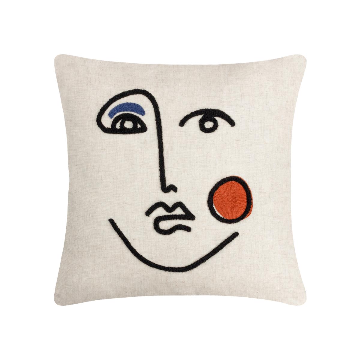 Inspired by the abstract artist, Henri Matisse, the outlines of the Cleo cushion are made up of delicately positioned threads to create this amazing abstract illustration of a female face. The eyebrow and beauty mark are crafted with amazing crewel embroidery, which is stitched onto a polylinen fabric. An inspiring, thought provoking cushion which will create a great talking point.