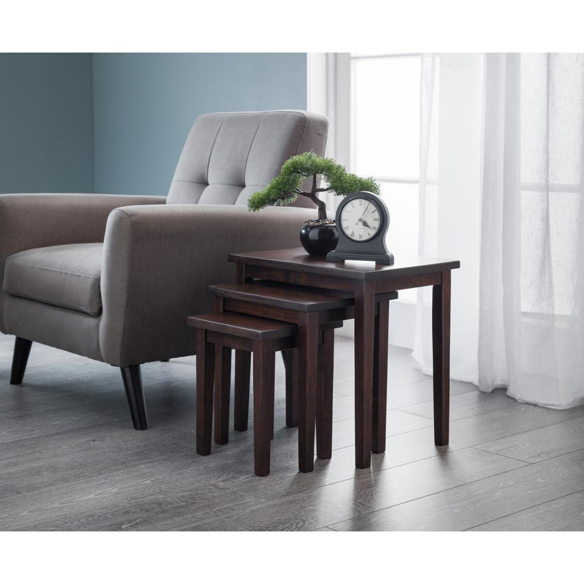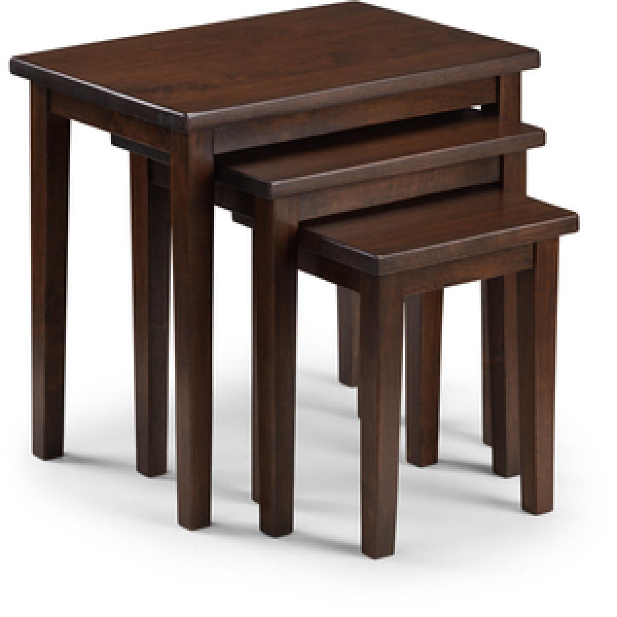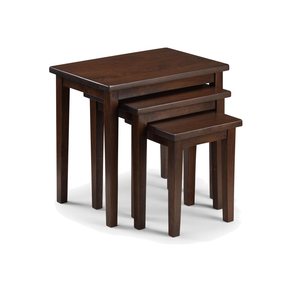 Cleo is a stylish and practical range of dining and occasional furniture which offers outstanding value for money. Its timeless design complements contemporary and traditional interior styles equally well. The Cleo Mahogany nest offers great versatility, comprising three nesting tables crafted from solid rubberwood and finished with a mahogany stain to offer a versatile space-saving solution. Part of the wider Cleo Mahogany Dining and Occasional range from Julian Bowen.