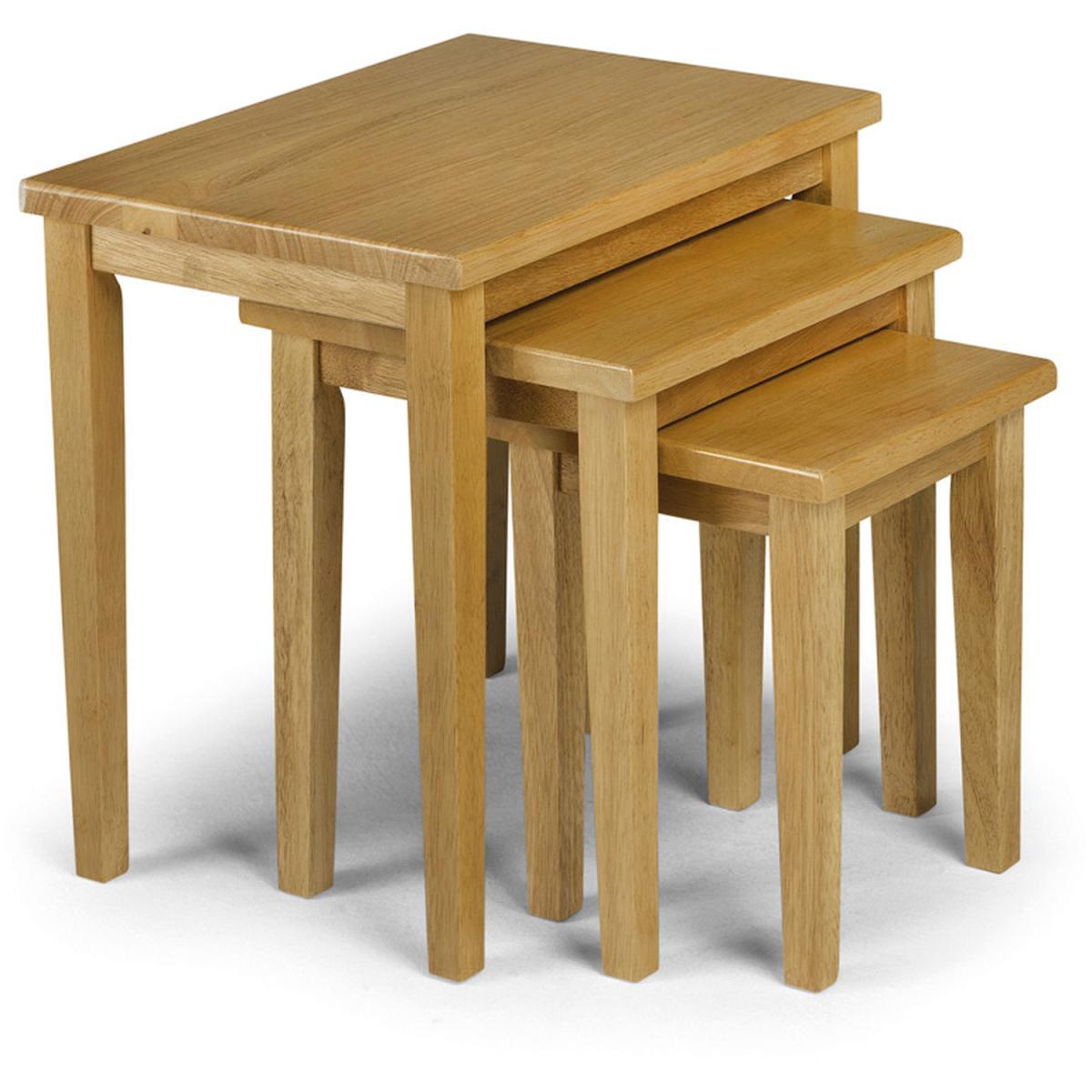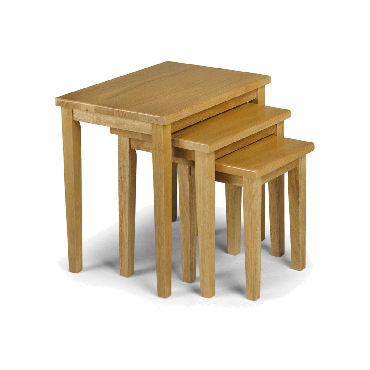 Cleo is a stylish and practical range of dining and occasional furniture which offers outstanding value for money. Its timeless design complements contemporary and traditional interior styles equally well. The Cleo natural oak nest offers great versatility, comprising 3 tables crafted from solid rubberwood and finished with a light oak stain.