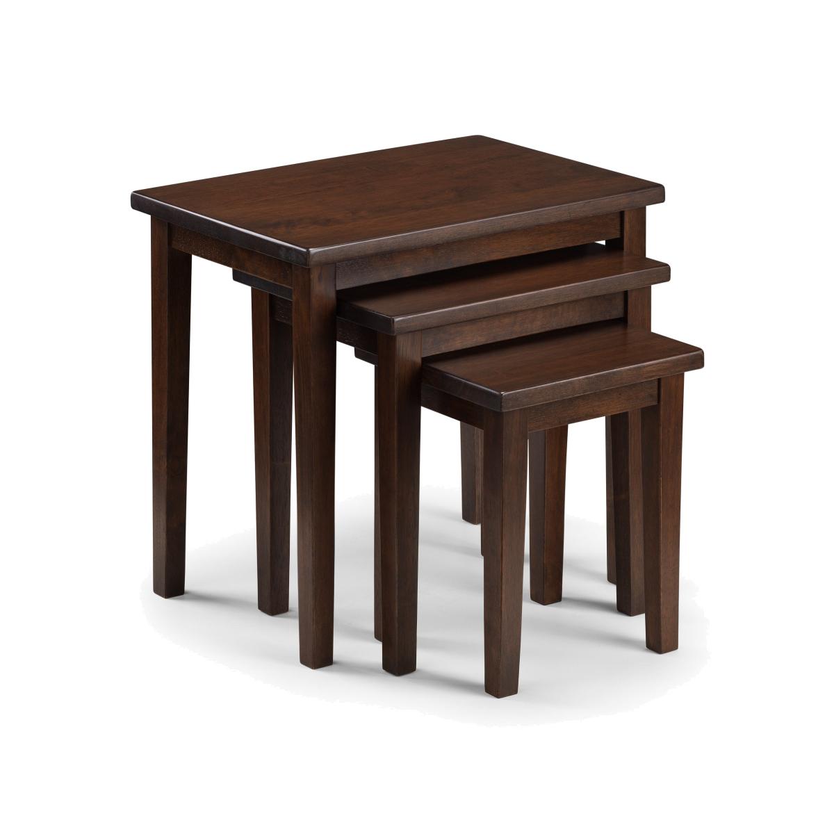 I love this set because of its timeless mahogany finish, which brings warmth and classic charm to any space. It's perfect for smaller living rooms or bedrooms where surface space is at a premium, as the nested design allows you to maximise flexibility-use them together for a cohesive look or separately when needed. They work particularly well in traditional or vintage-inspired interiors, but can also add character to more contemporary eclectic styles. For styling tips, try layering with textured accessories like soft cushions or ceramic vases, and keep the surfaces clutter-free to highlight the rich wood grain. They're practical, versatile, and a smart choice for adding both function and warmth to your home.