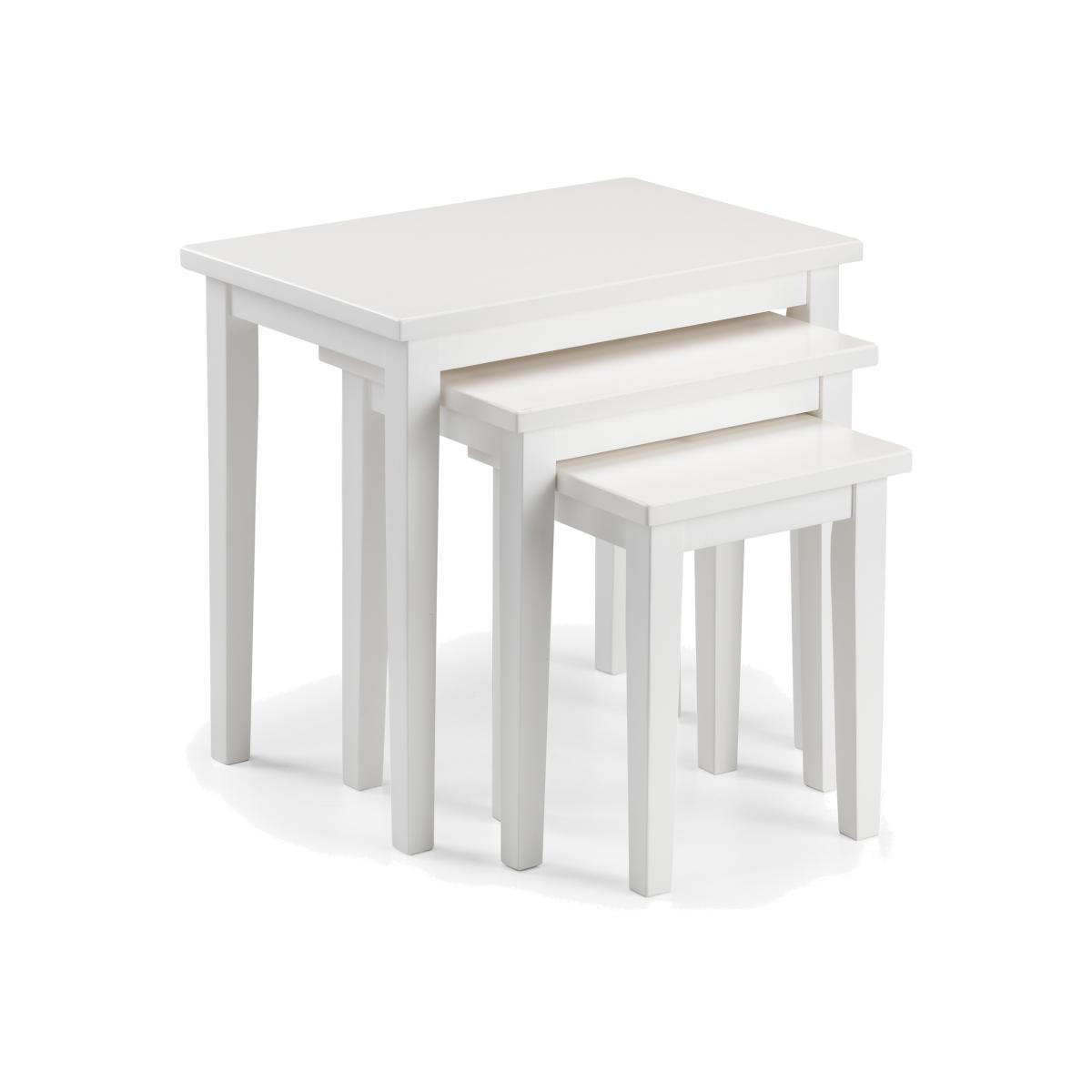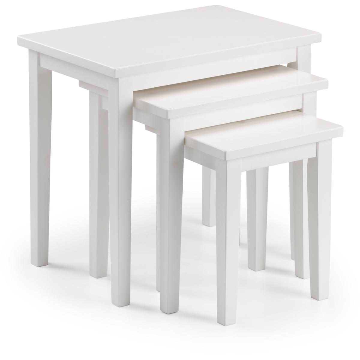 Cleo is a stylish and practical collection of dining and occasional furniture which offers outstanding value for money. Its timeless design complements contemporary and traditional interior styles equally well. The Cleo White nest offers great versatility, comprising three nesting tables crafted from solid rubberwood in an immaculate painted white finish to offer a versaitile space-saving solution.
