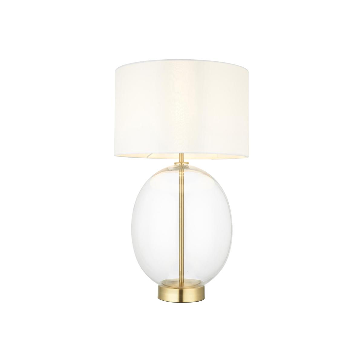 This boutique hotel style lamp is designed to infuse your home with the sophistication and allure of a five-star retreat, featuring a unique oval glass lamp base and a simplistic white fabric shade that offers a soft glow.